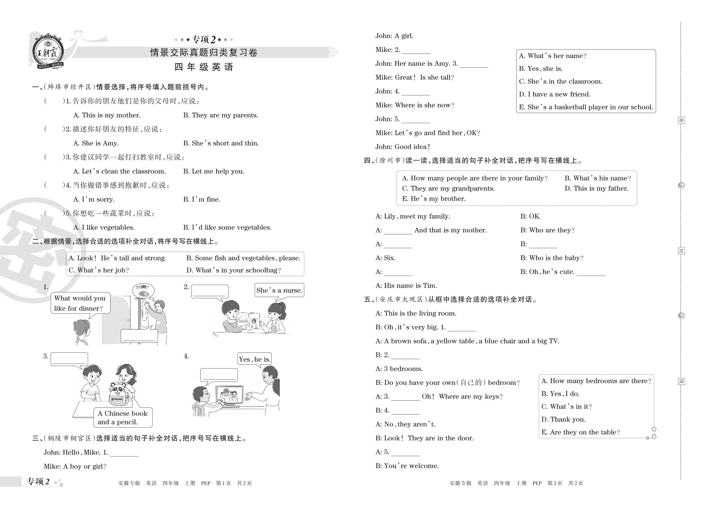 王朝霞期末专项卷——情景交际真题归类复习卷四年级上册英语(人教PEP版)_R211113094412985【2】