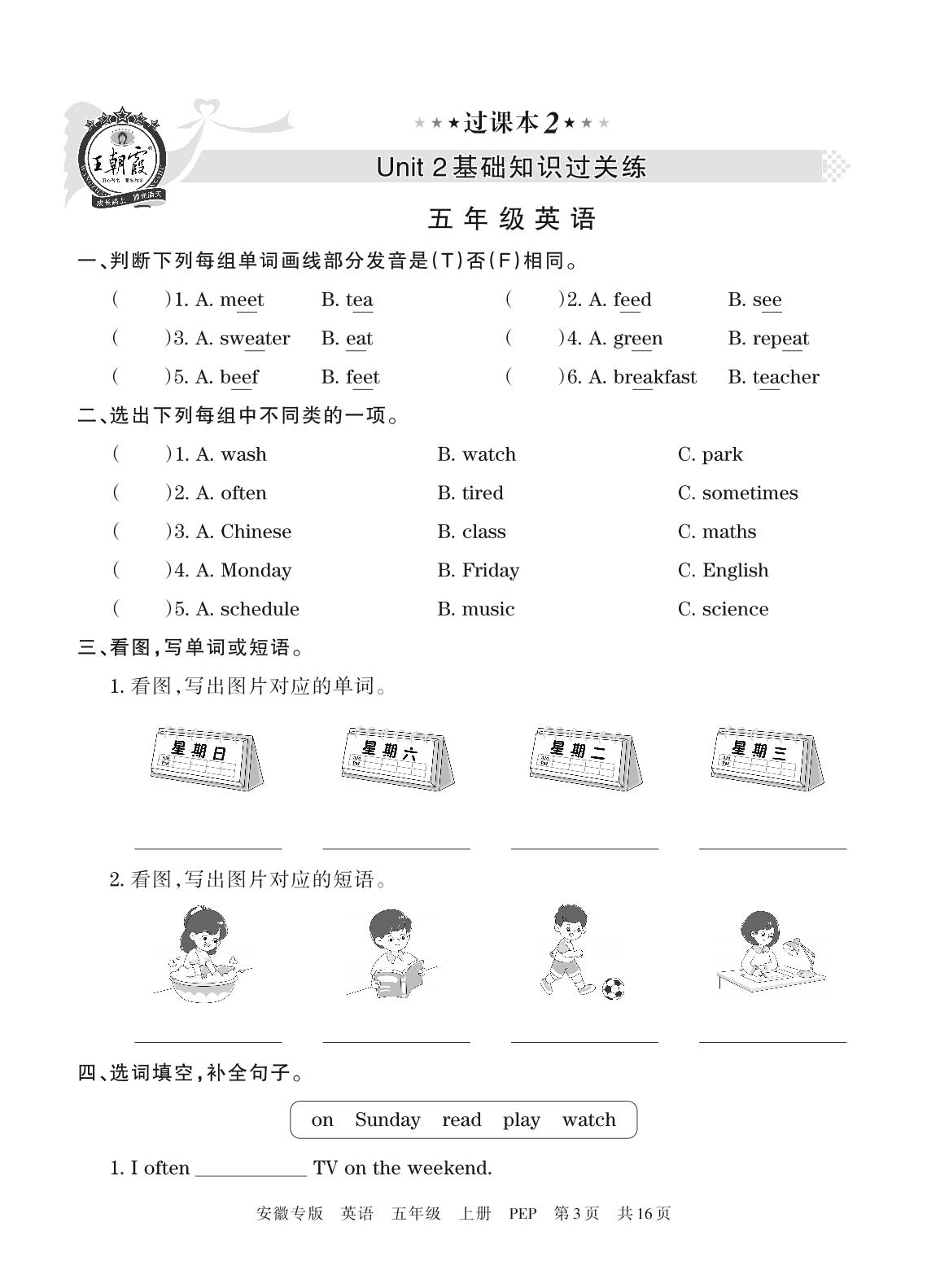 王朝霞期末过课本——Unit 2基础知识过关练五年级上册英语(人教PEP版)【2】