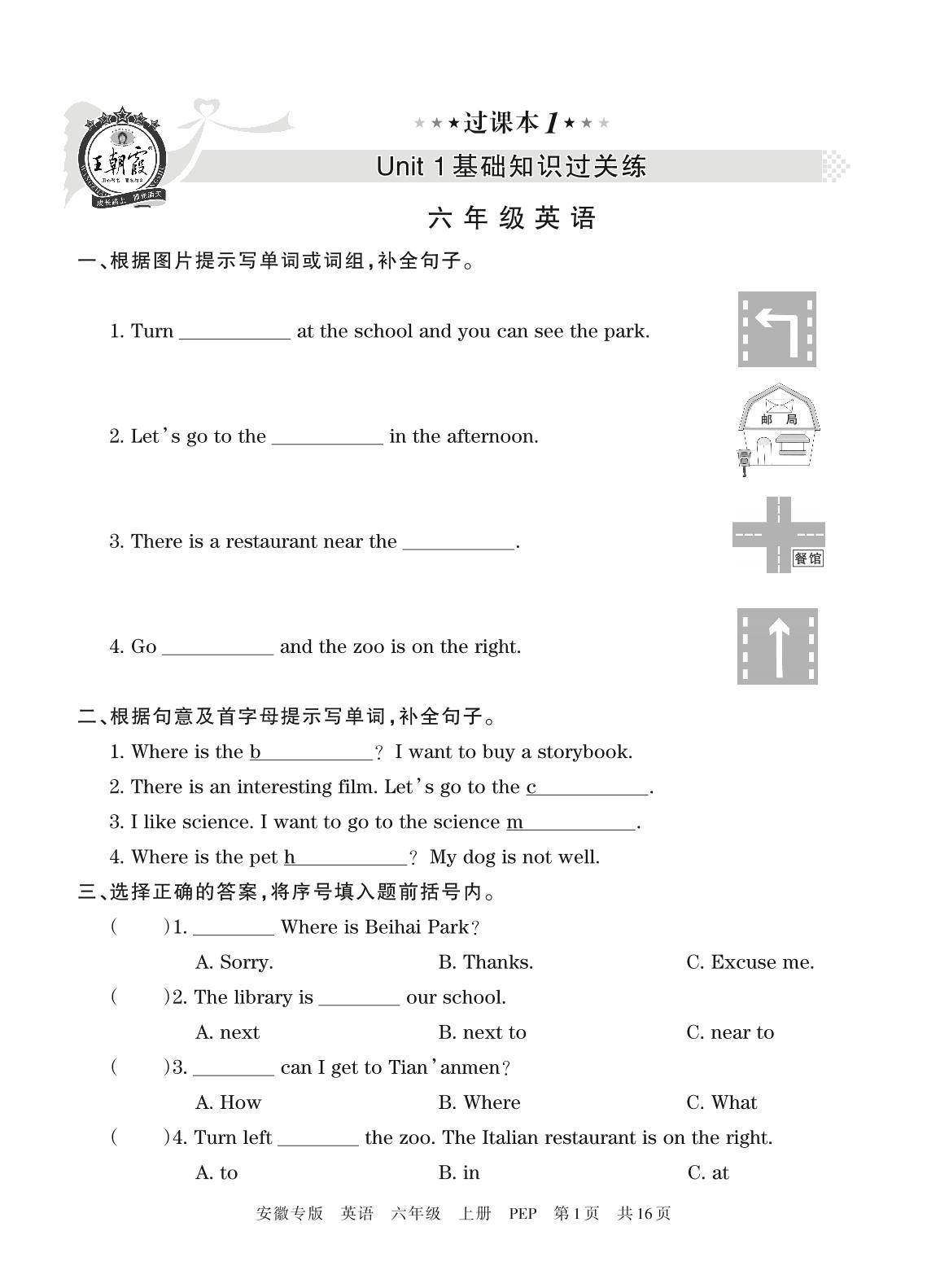 王朝霞期末过课本——Unit 1基础知识过关练六年级上册英语(人教PEP版)【1】