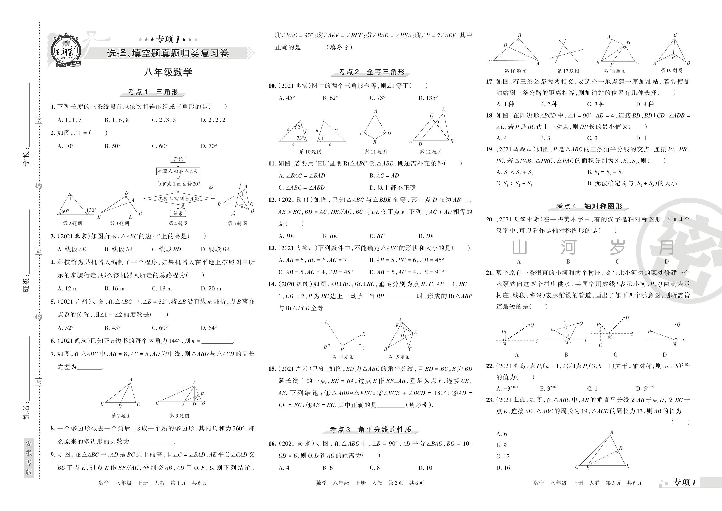 王朝霞期末专项卷——选择、填空题真题归类复习卷八年级上册数学(人教版)【1】