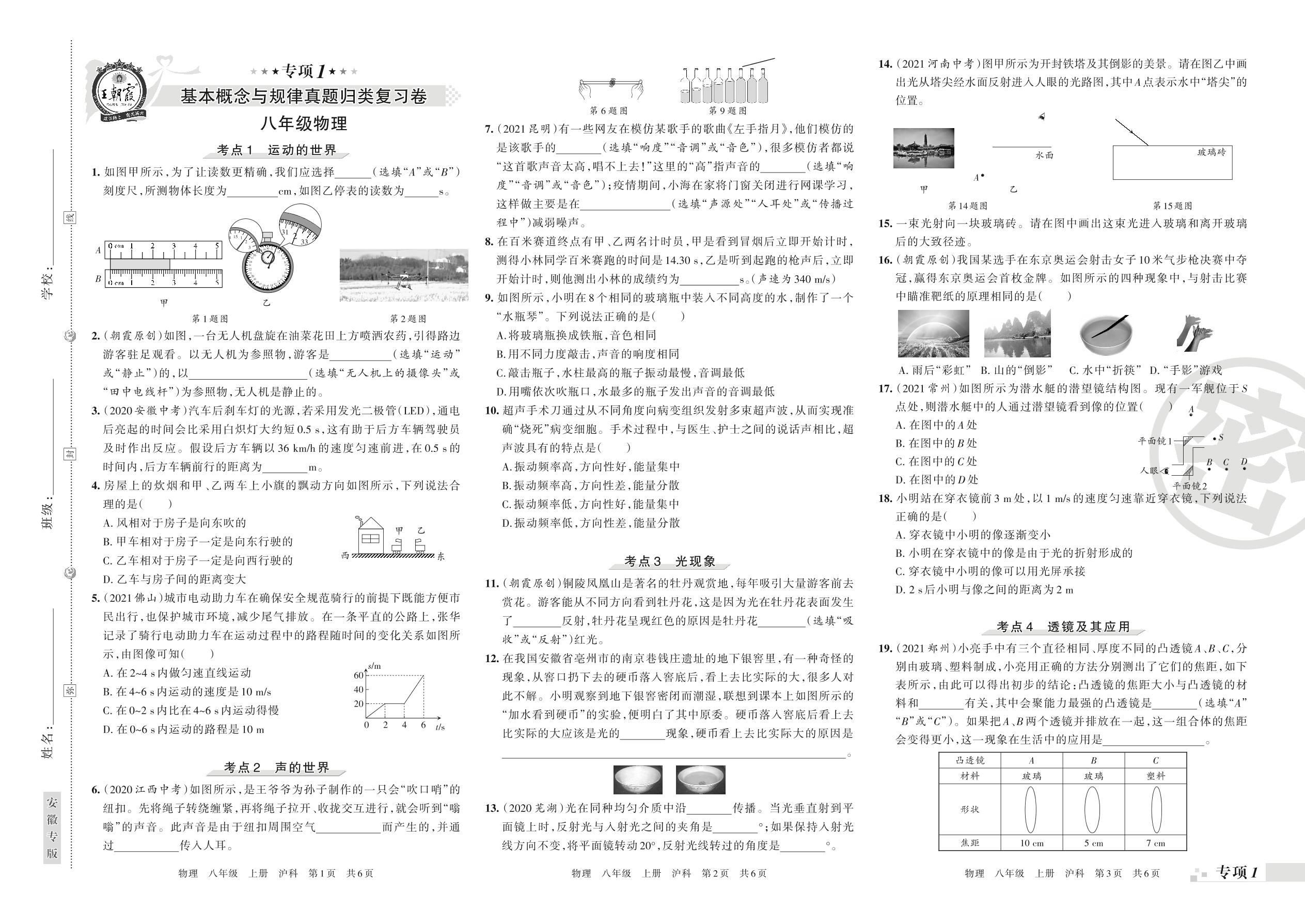 王朝霞期末专项卷——基本概念与规律真题归类复习卷八年级上册物理(沪科版)【1】