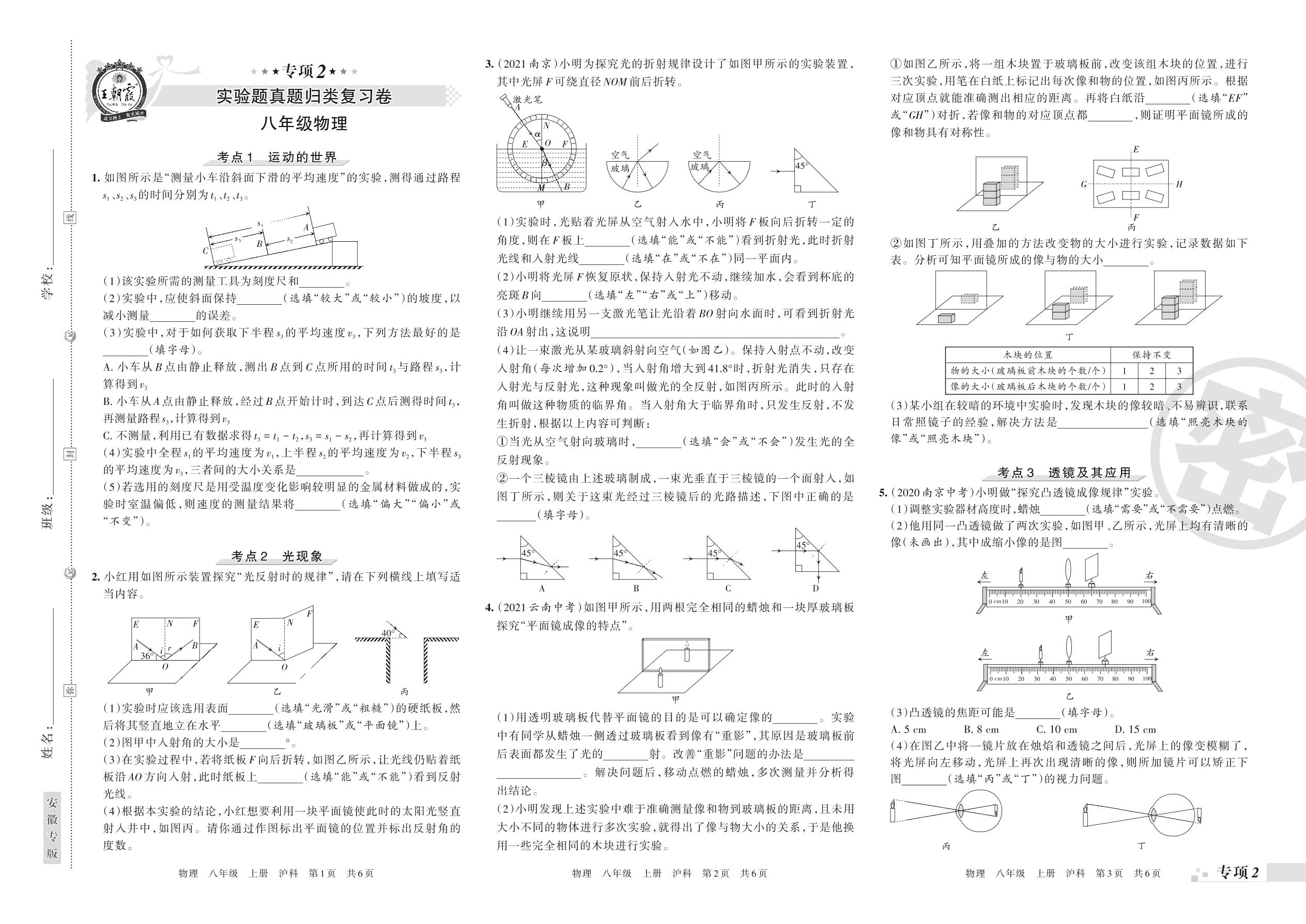 王朝霞期末专项卷——实验题真题归类复习卷八年级上册物理(沪科版)【2】