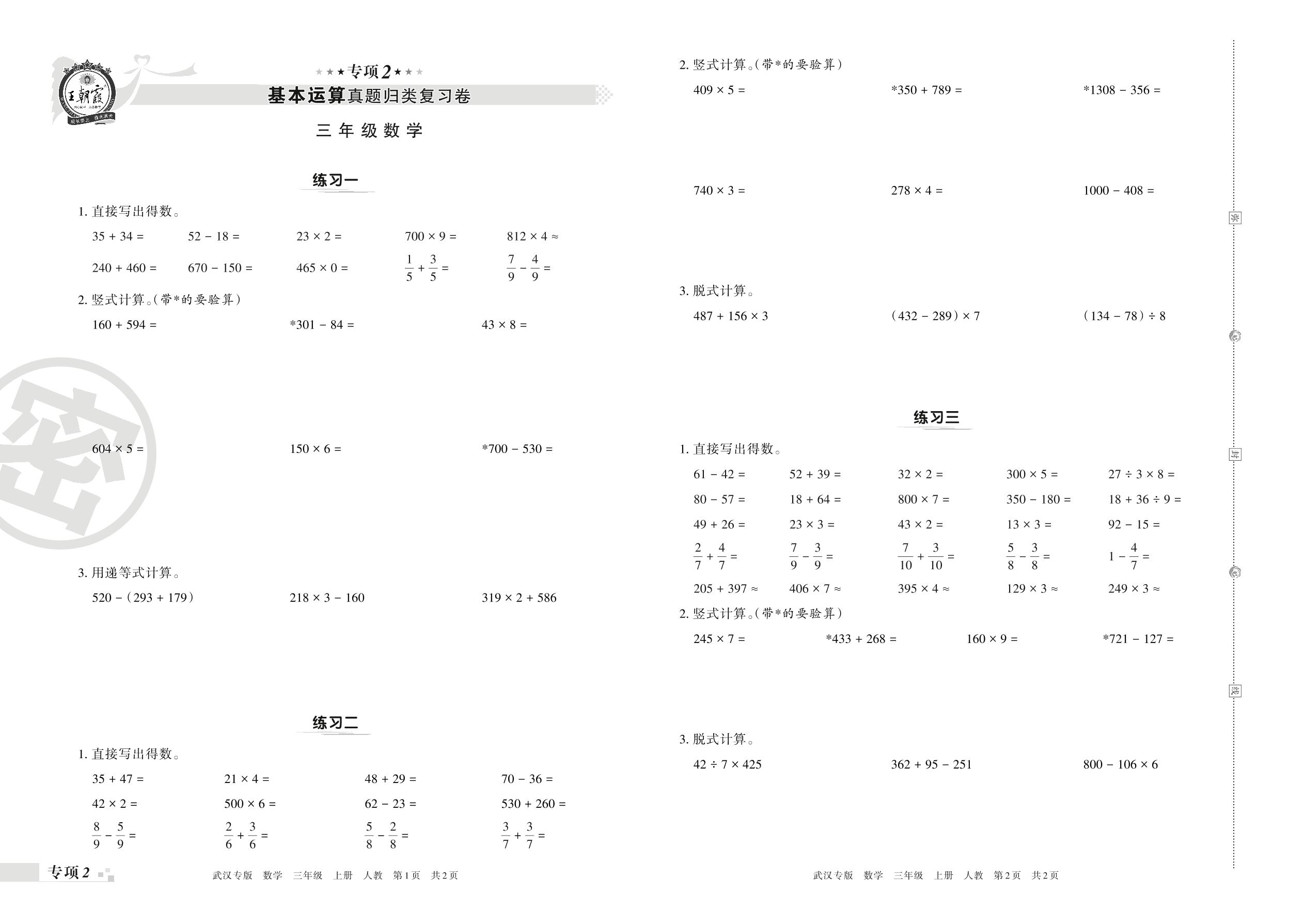 王朝霞期末专项卷——基本运算真题归类复习卷三年级上册数学(人教版)【2】
