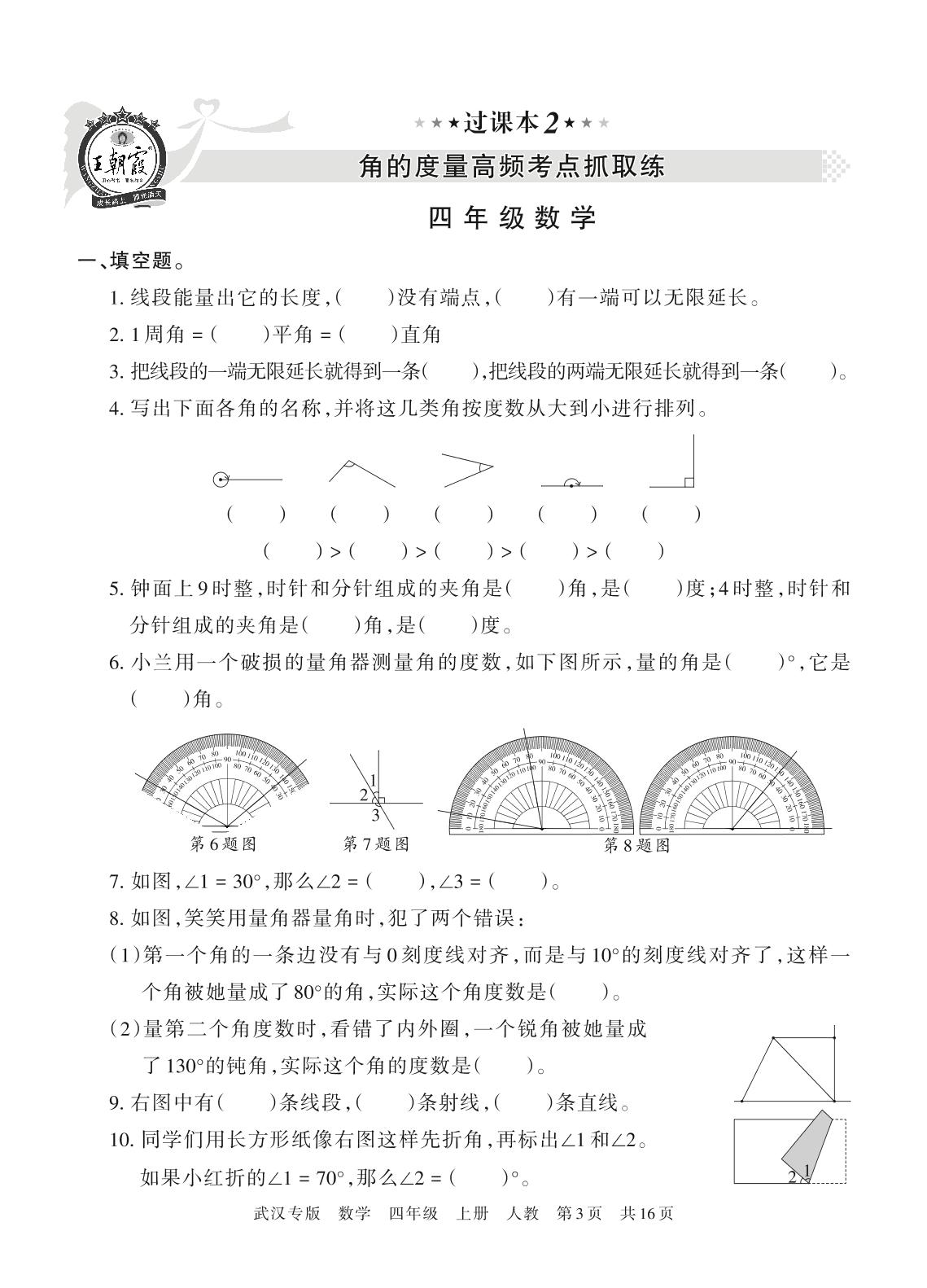 王朝霞期末过课本——角的度量高频考点抓取练四年级上册数学(人教版)【2】