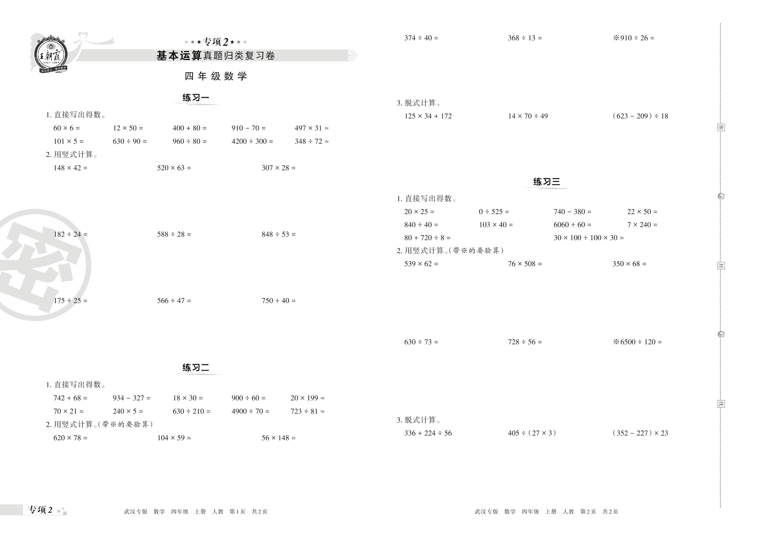 王朝霞期末专项卷——基本运算真题归类复习卷四年级上册数学(人教版)【2】