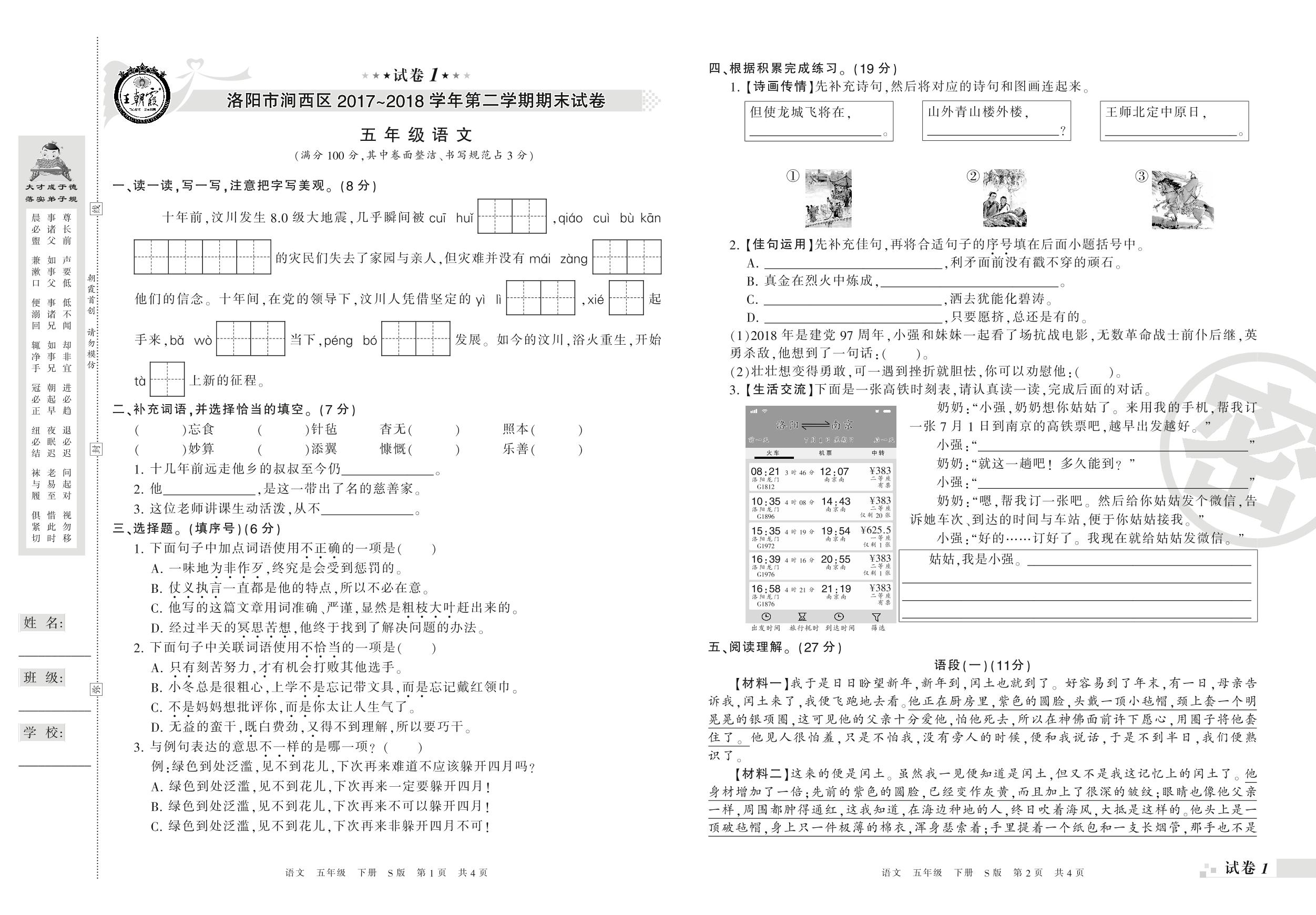 2017-2018学年第二学期洛阳市涧西区五年级语文试卷(S版)_R210801202119【1】
