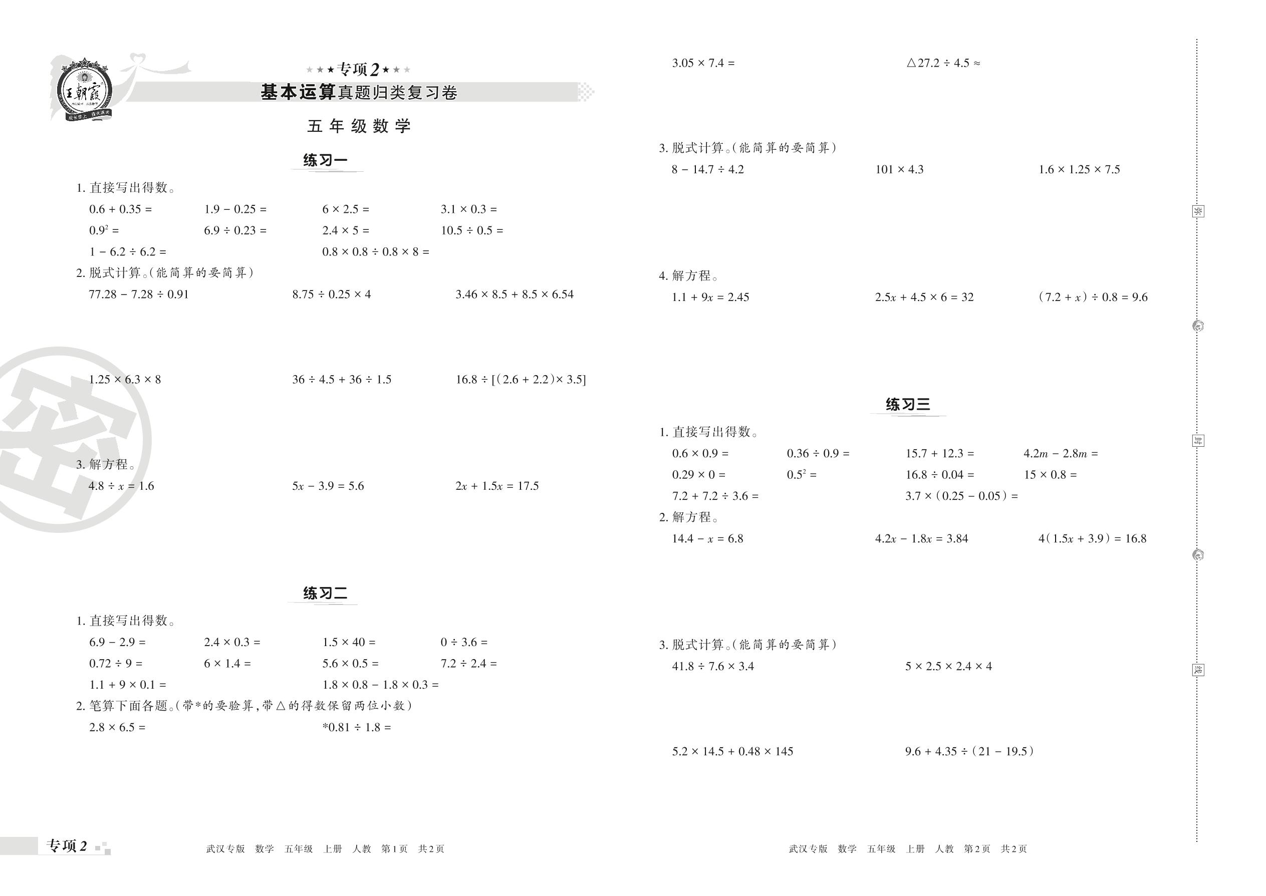 王朝霞期末专项卷——基本运算真题归类复习卷五年级上册数学(人教版)【2】