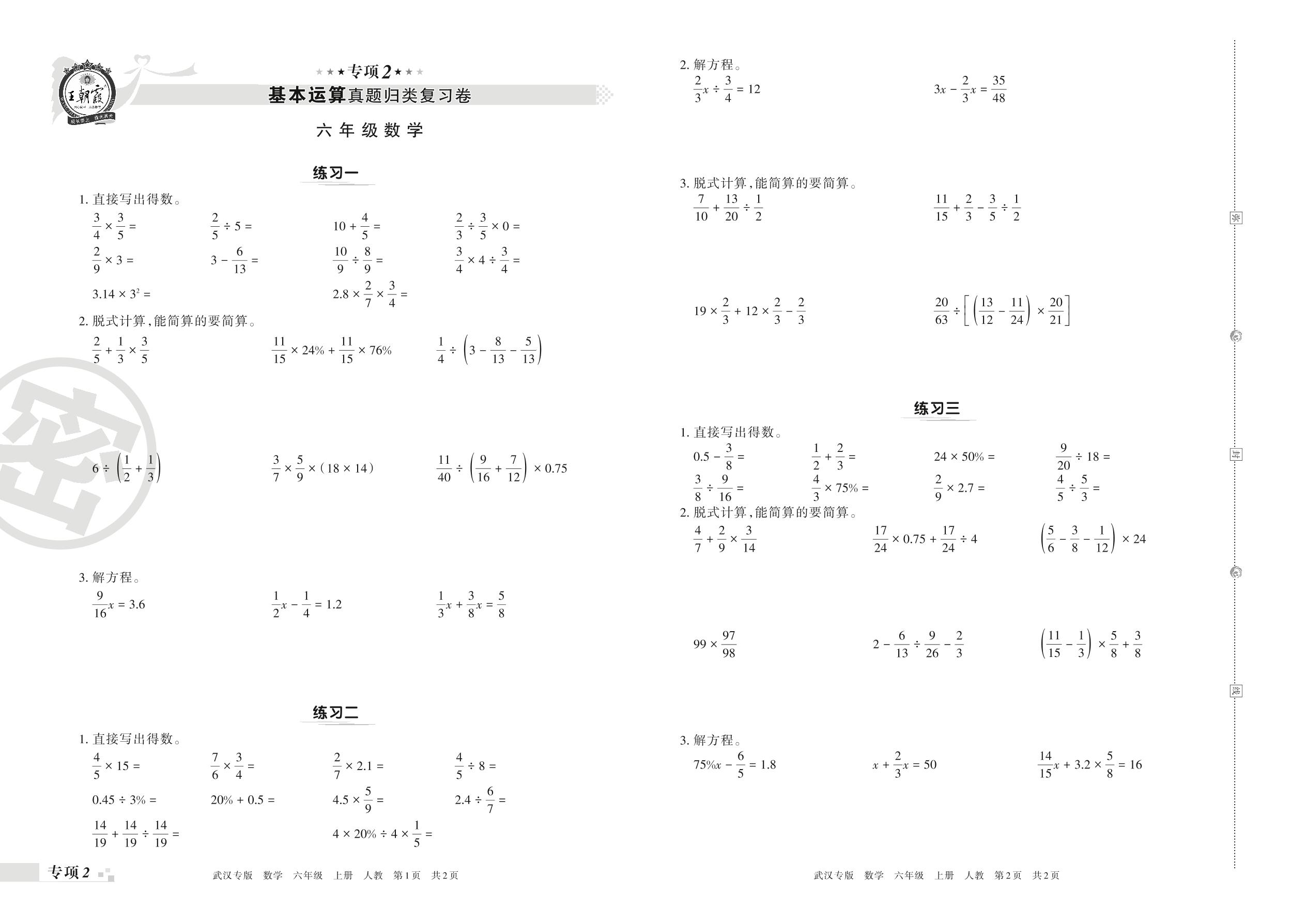 王朝霞期末专项卷——基本运算真题归类复习卷六年级上册数学(人教版)【2】