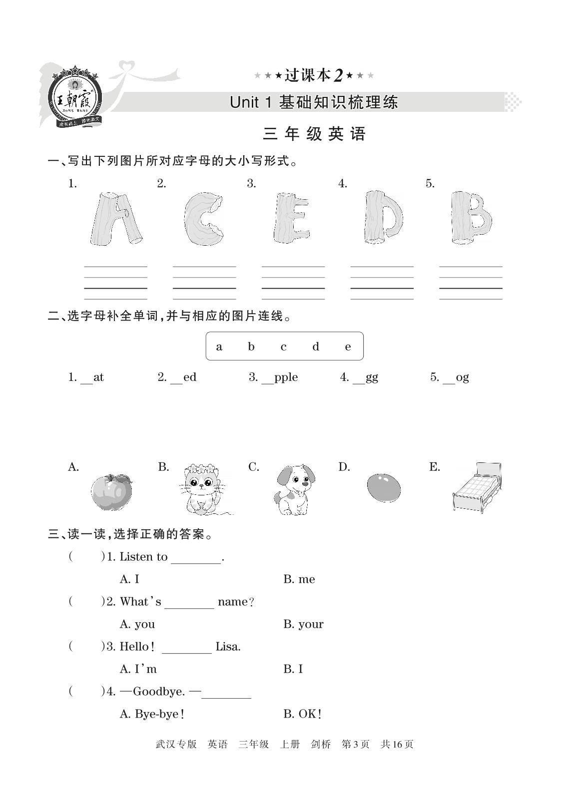 王朝霞期末过课本——Unit 1基础知识梳理练三年级上册英语(剑桥版)【2】