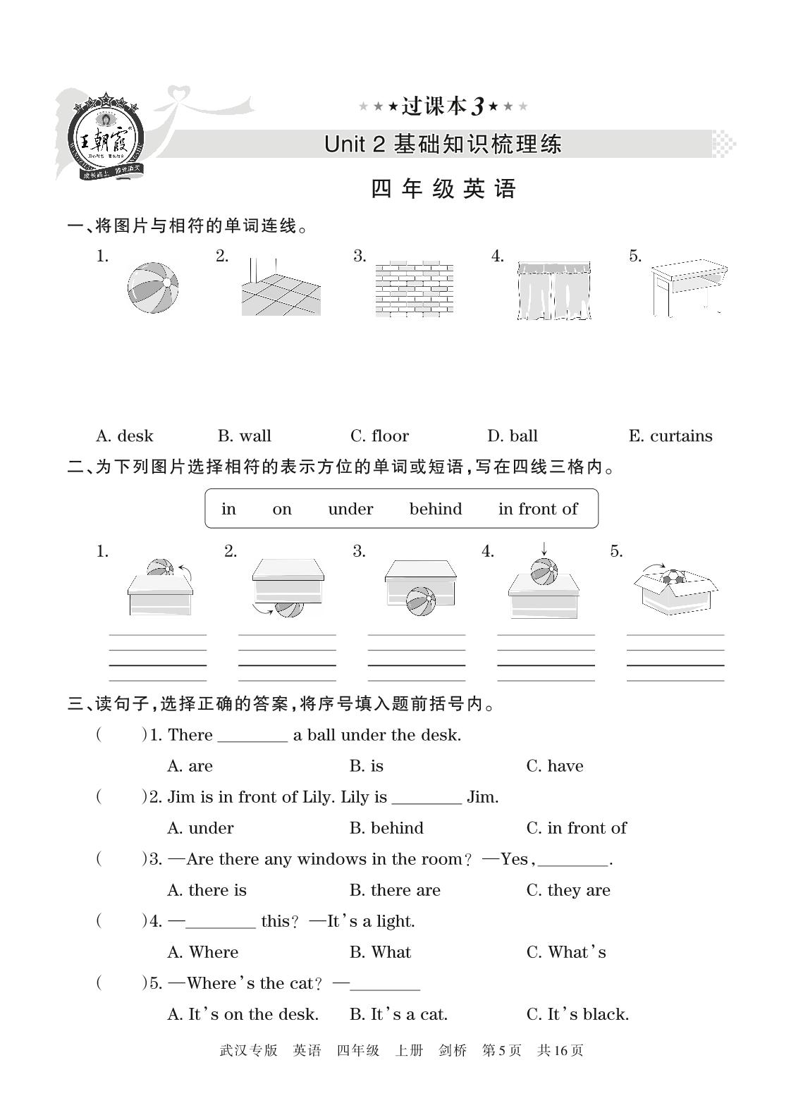 王朝霞期末过课本——Unit 2基础知识梳理练四年级上册英语(剑桥版)【3】