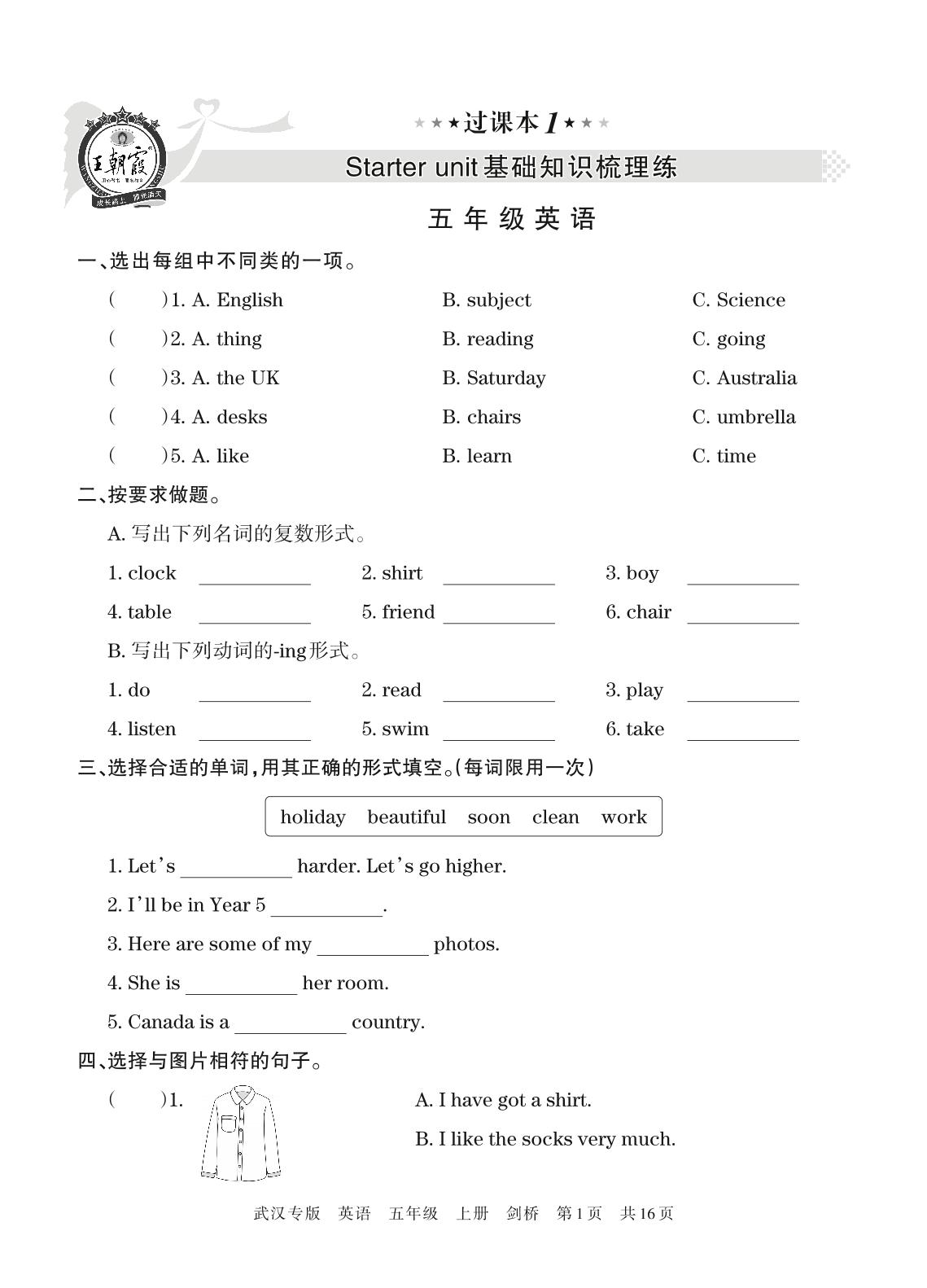 王朝霞期末过课本——Starter unit 基础知识梳理练五年级上册英语(剑桥版)【1】
