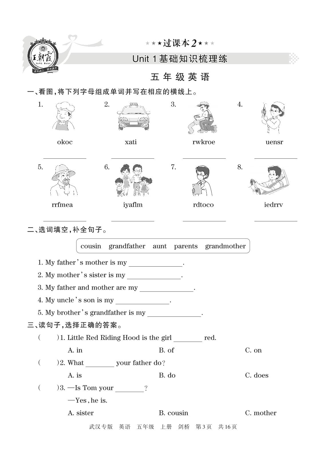 王朝霞期末过课本——Unit 1基础知识梳理练五年级上册英语(剑桥版)【2】