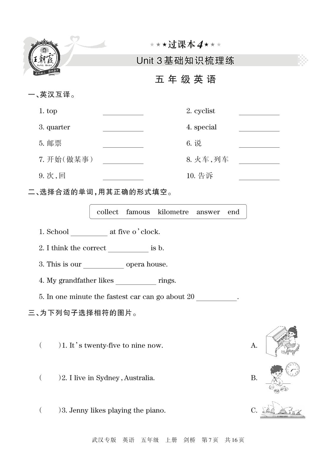 王朝霞期末过课本——Unit 3基础知识梳理练五年级上册英语(剑桥版)【4】
