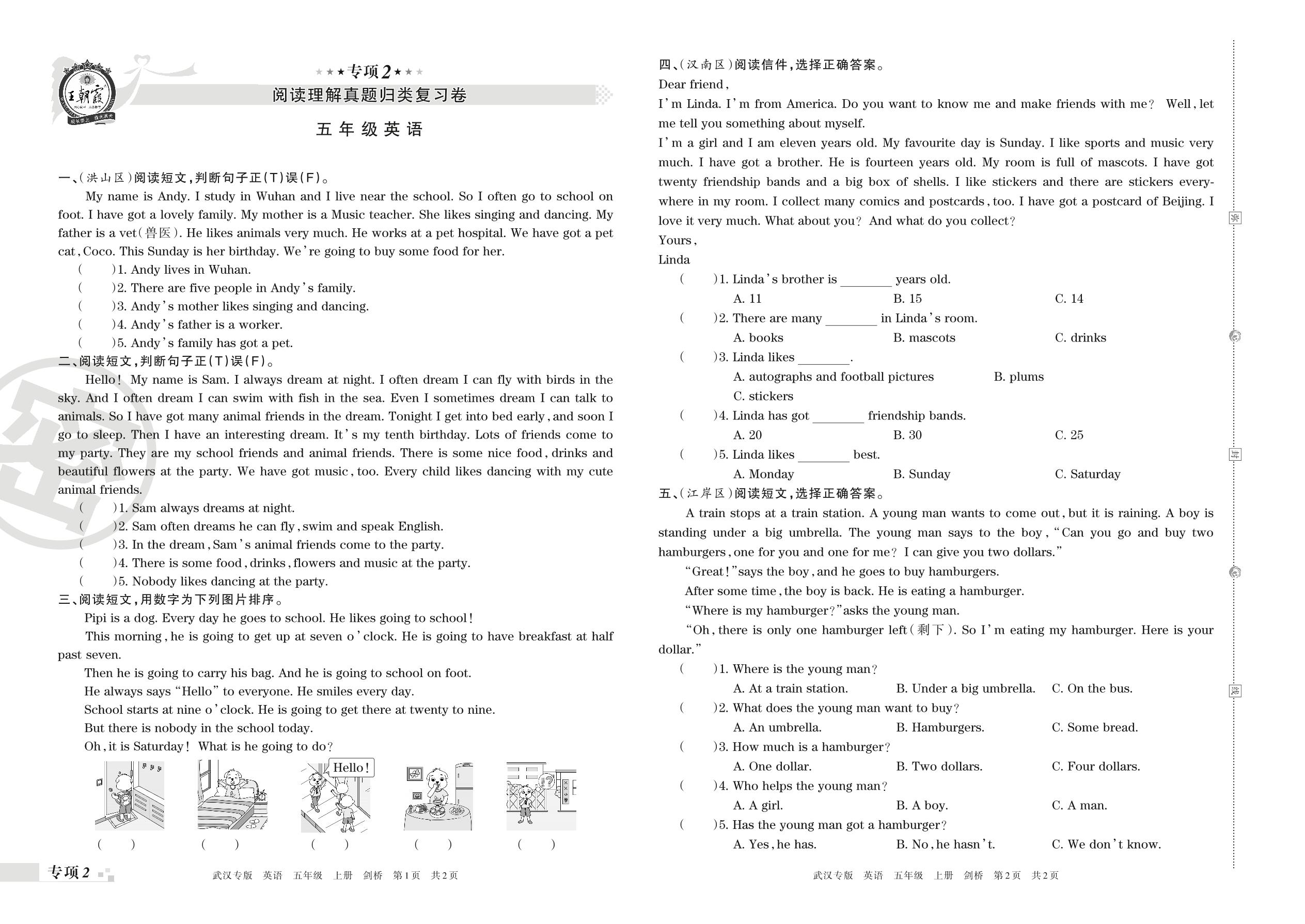 王朝霞期末专项卷——阅读理解真题归类复习卷五年级上册英语(剑桥版)【2】