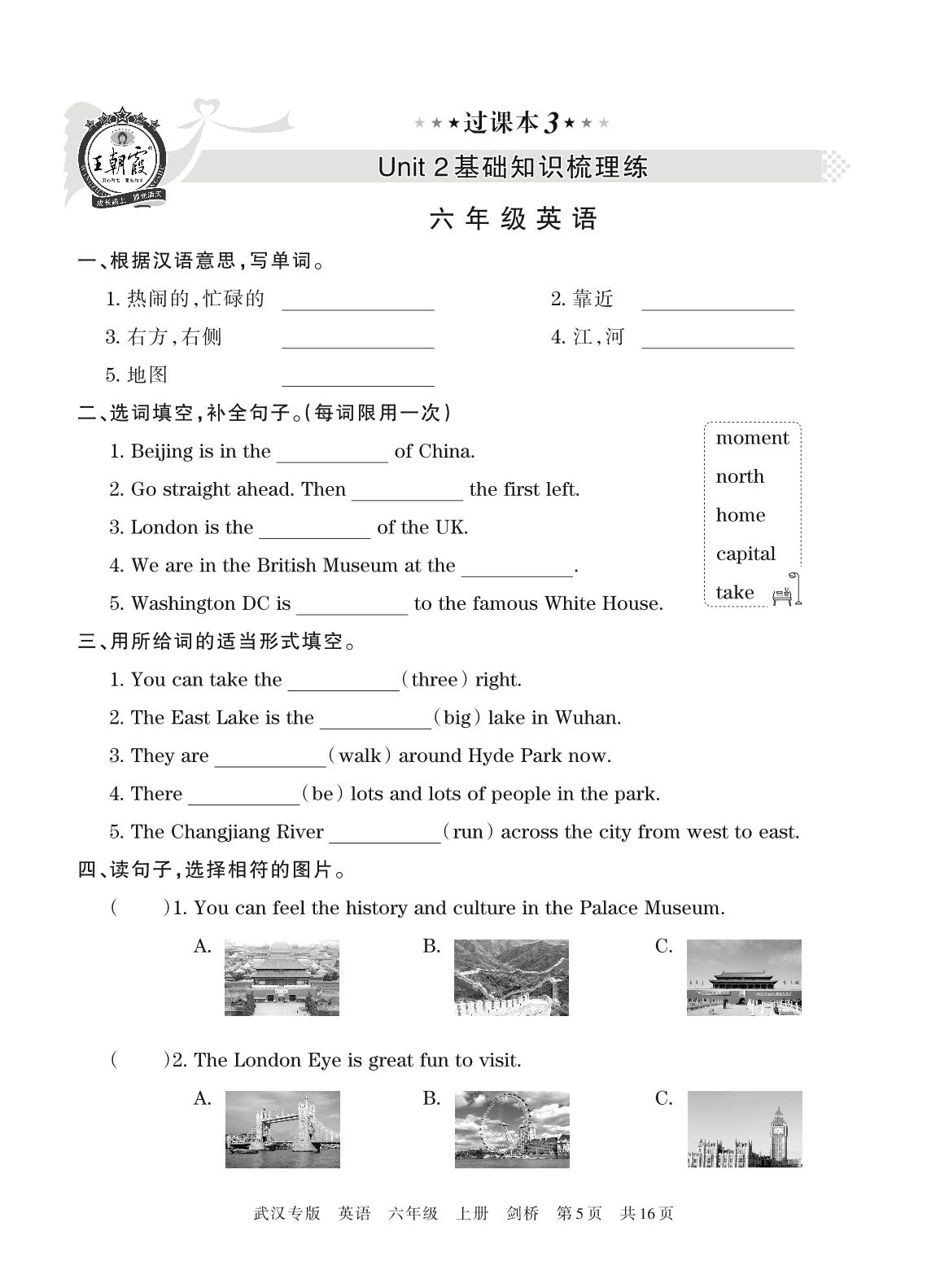 王朝霞期末过课本——Unit 2基础知识梳理练六年级上册英语(剑桥版)【3】