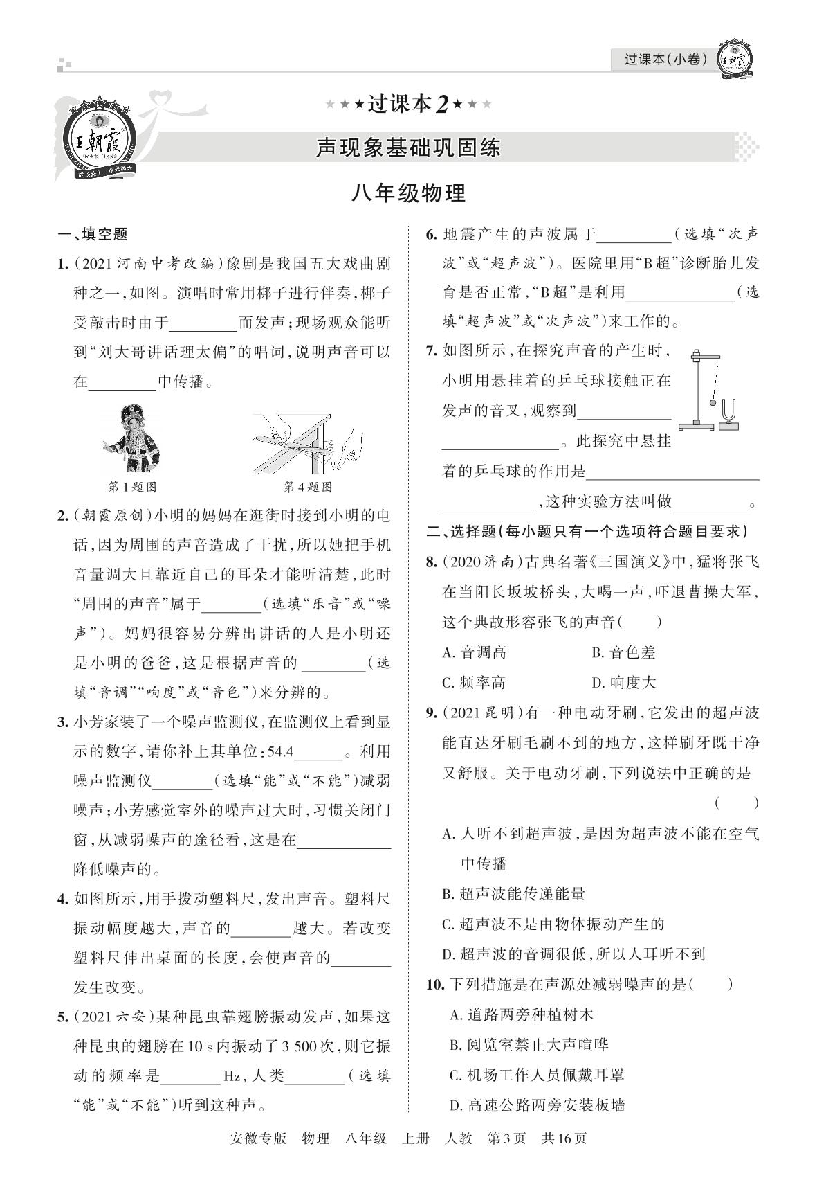 王朝霞期末过课本——声现象基础巩固练八年级上册物理(人教版)【2】