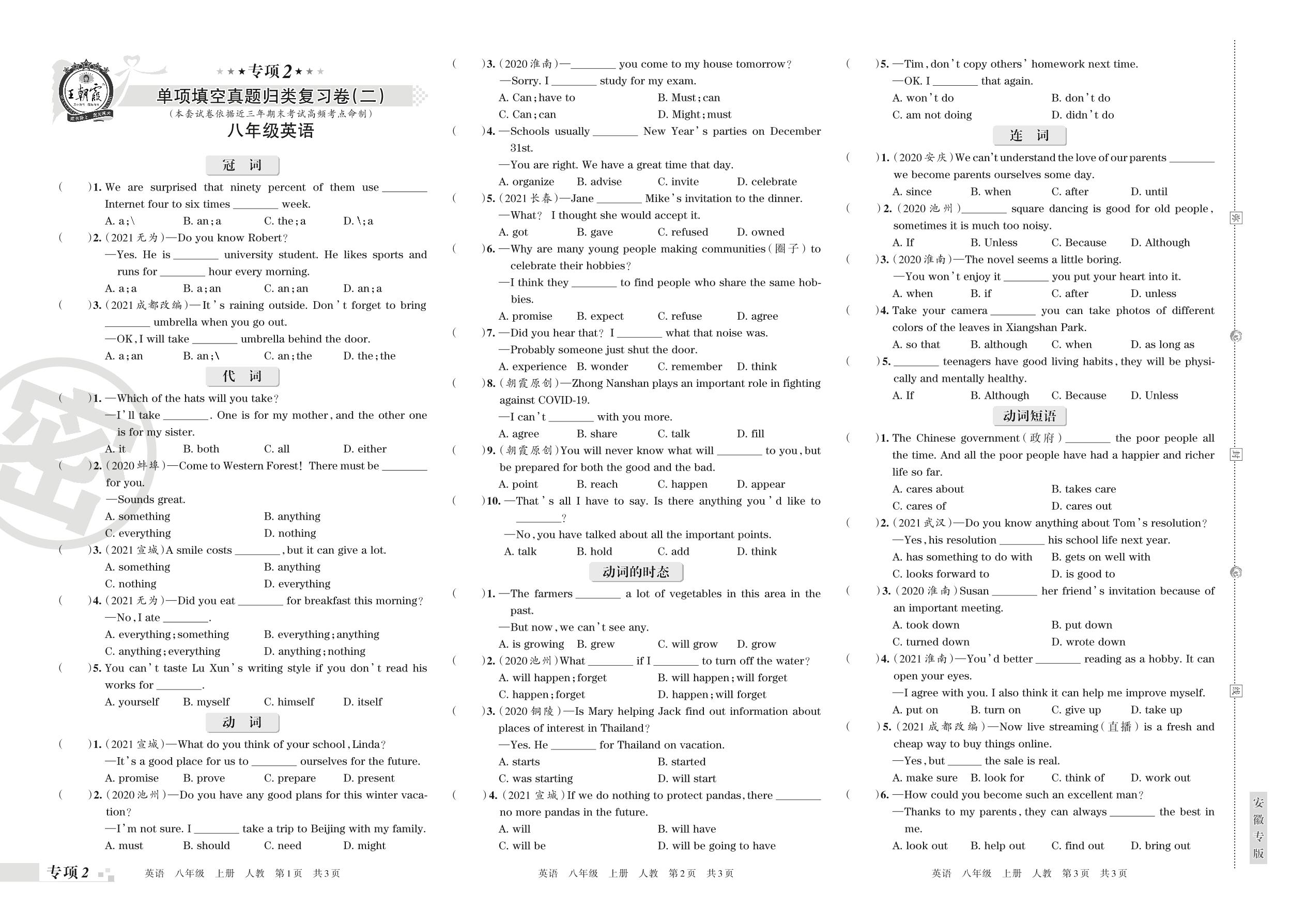 王朝霞期末专项卷——单项填空真题归类复习卷(二)八年级上册英语(人教版)【2】