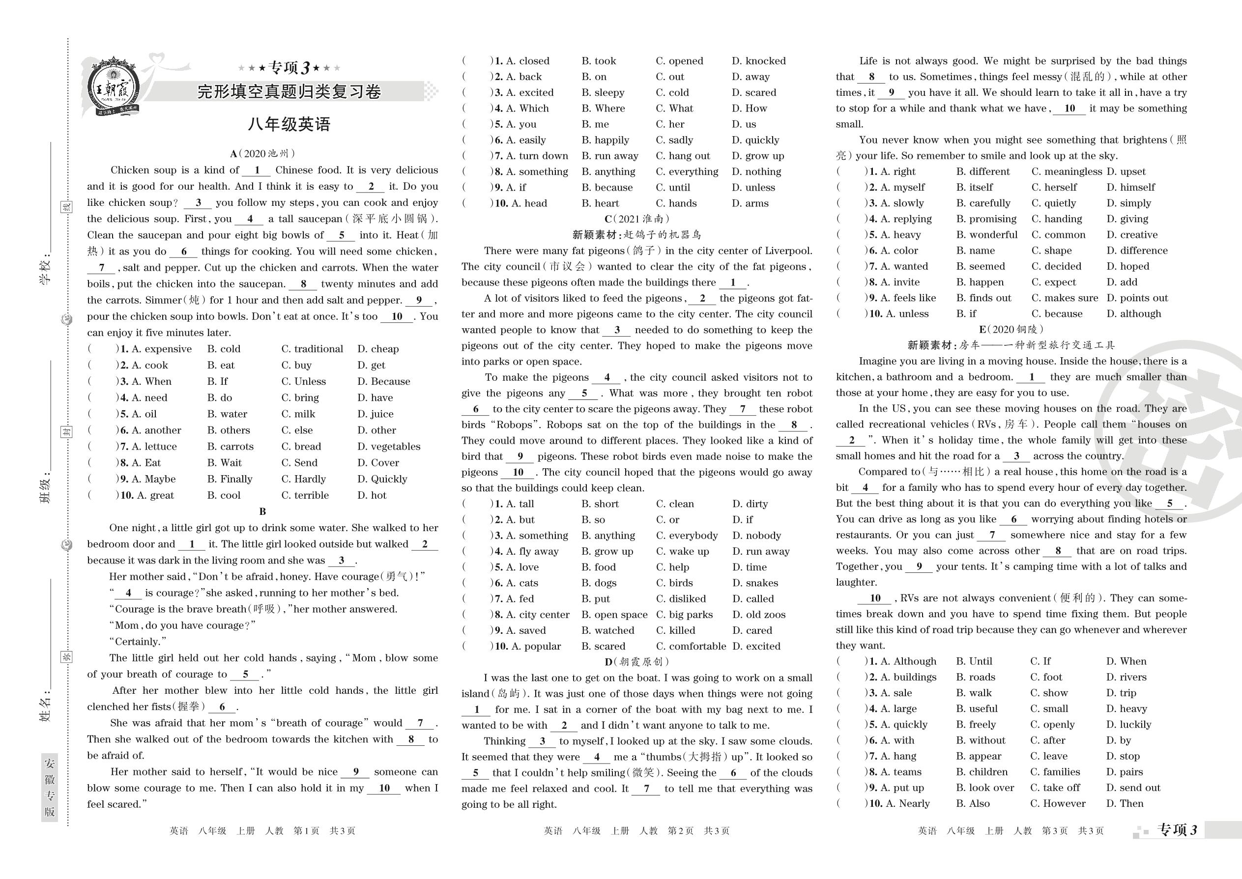 王朝霞期末专项卷——完形填空真题归类复习卷八年级上册英语(人教版)【3】