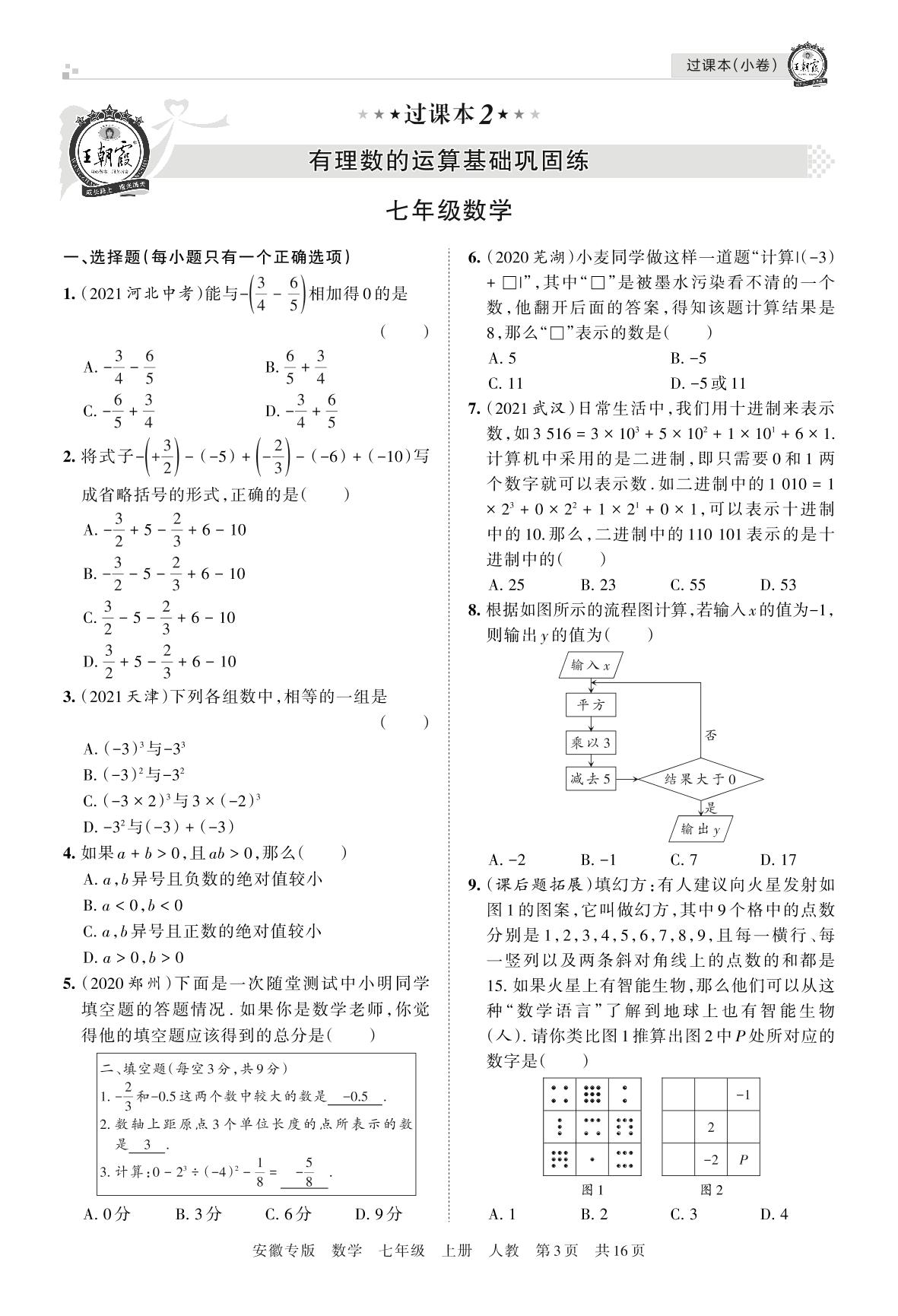 王朝霞期末过课本——有理数的运算基础巩固练七年级上册数学(人教版)【2】