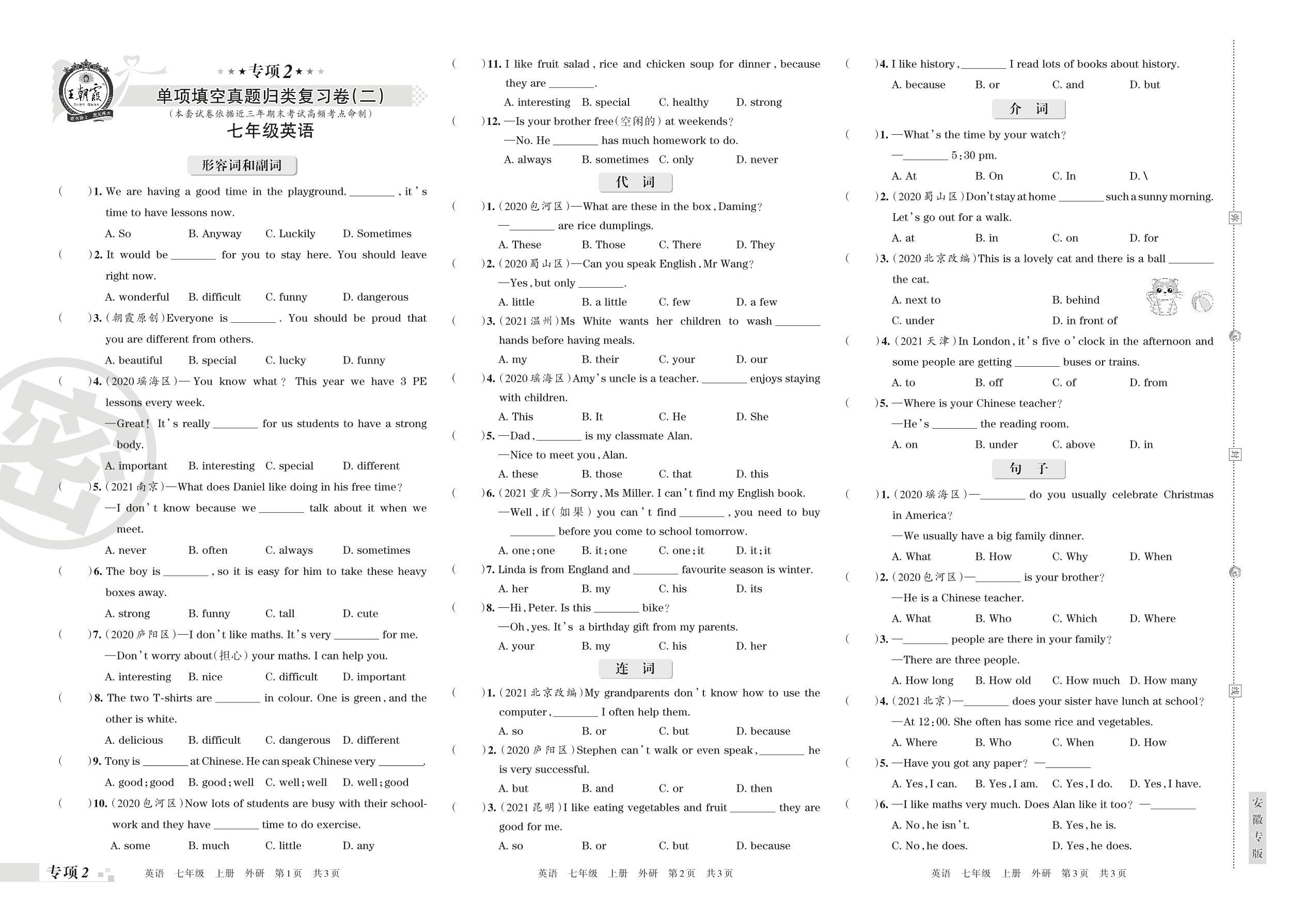 王朝霞期末专项卷——单项填空真题归类复习卷(二)七年级上册英语(外研版)【2】