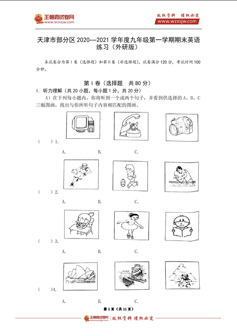 天津市部分区2020—2021学年度九年级第一学期期末英语练习(外研版)