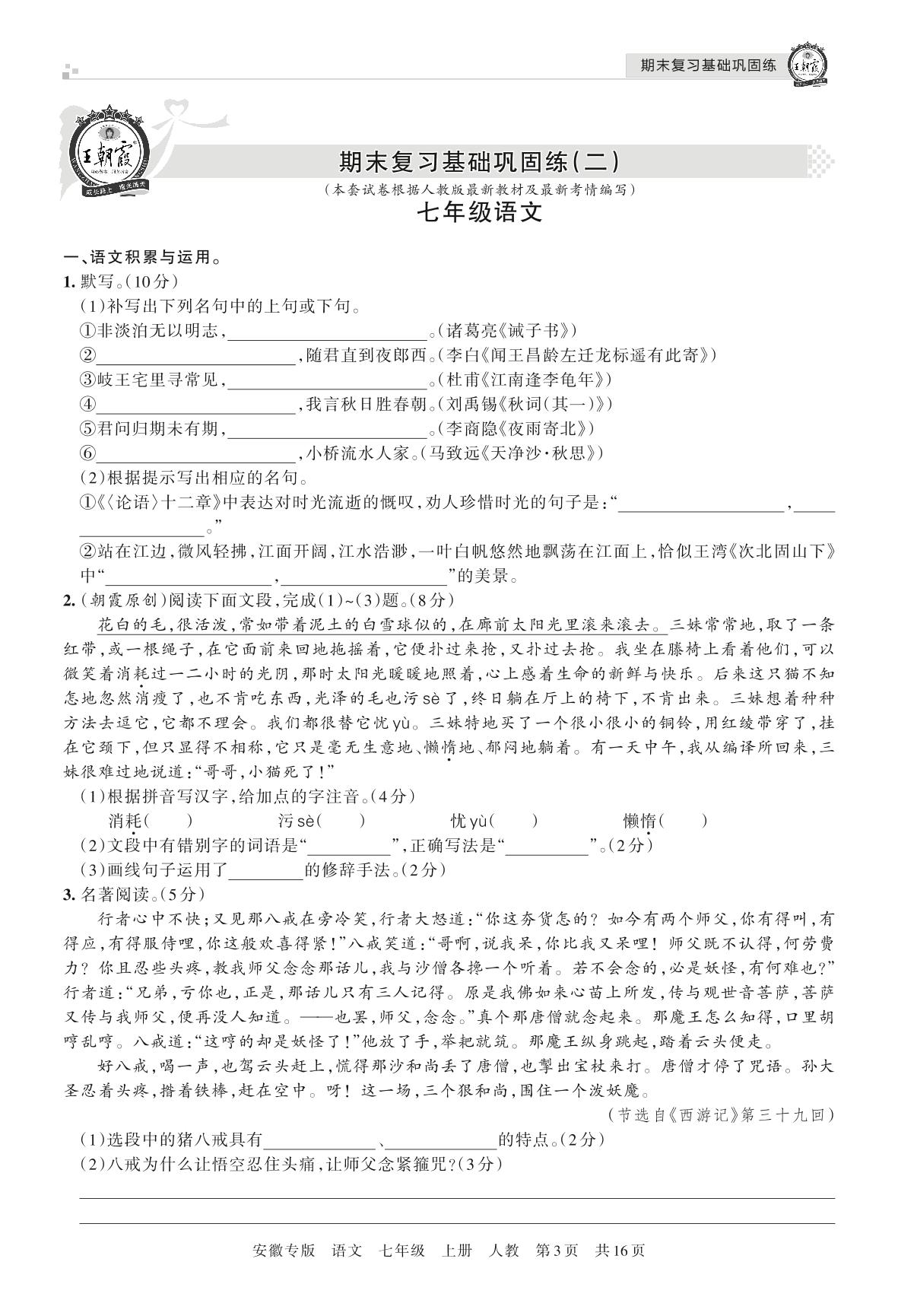 王朝霞期末小卷——期末复习基础巩固练(二)七年级上册语文(人教版)_R211116104940585【2】