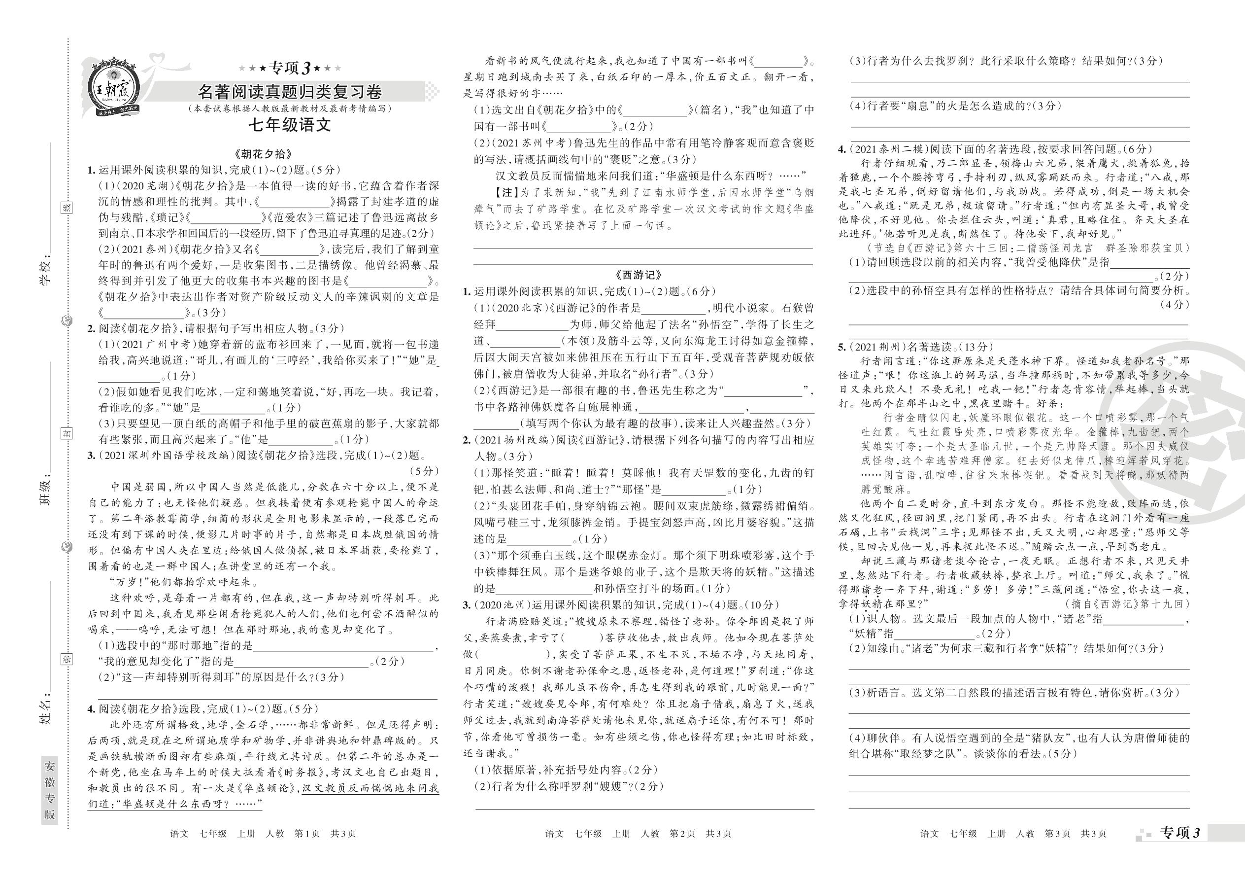 王朝霞期末专项卷——名著阅读真题归类复习卷七年级上册语文(人教版)【3】
