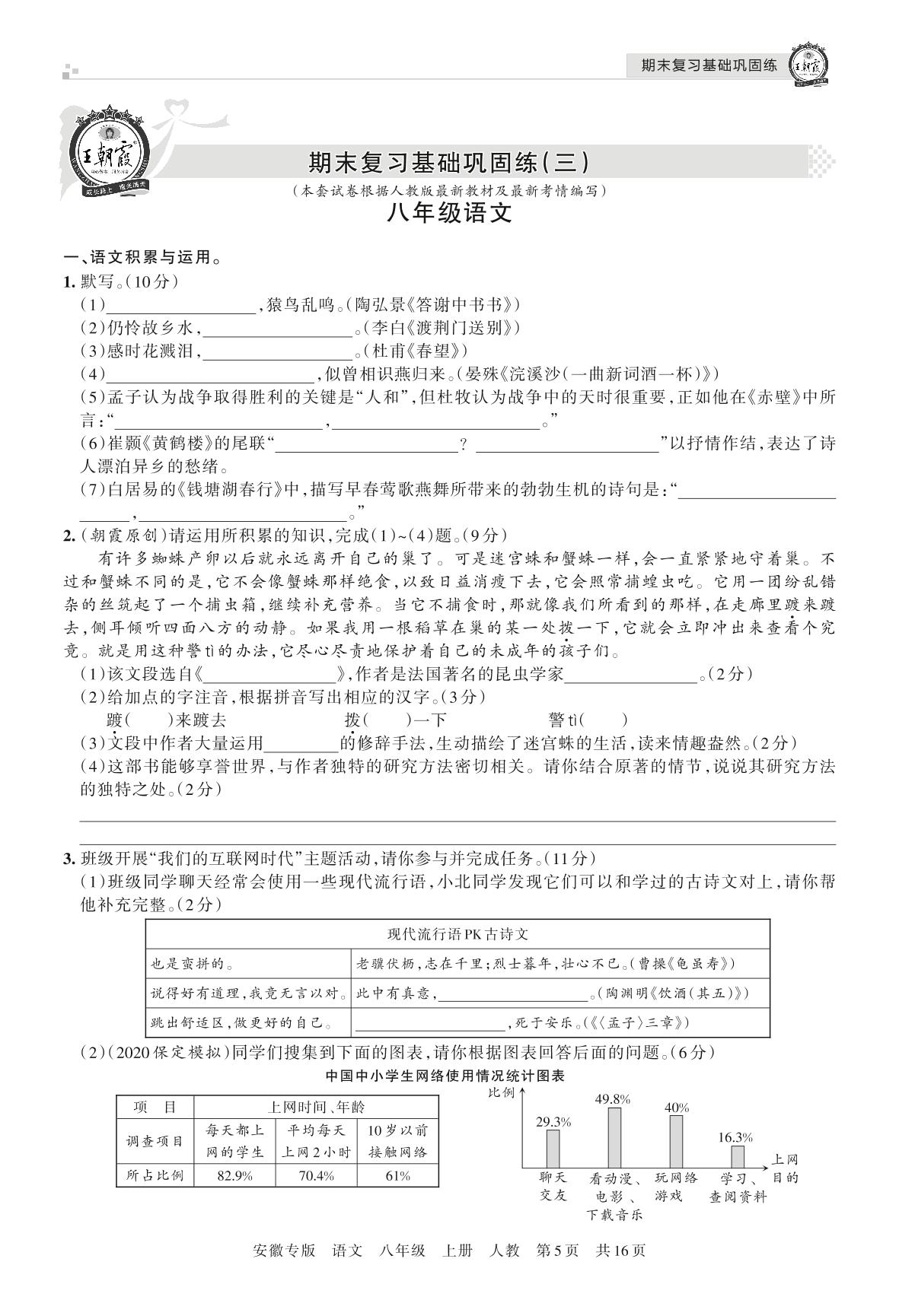 王朝霞期末小卷——期末复习基础巩固练(三)八年级上册语文(人教版)_R211116105457431【3】