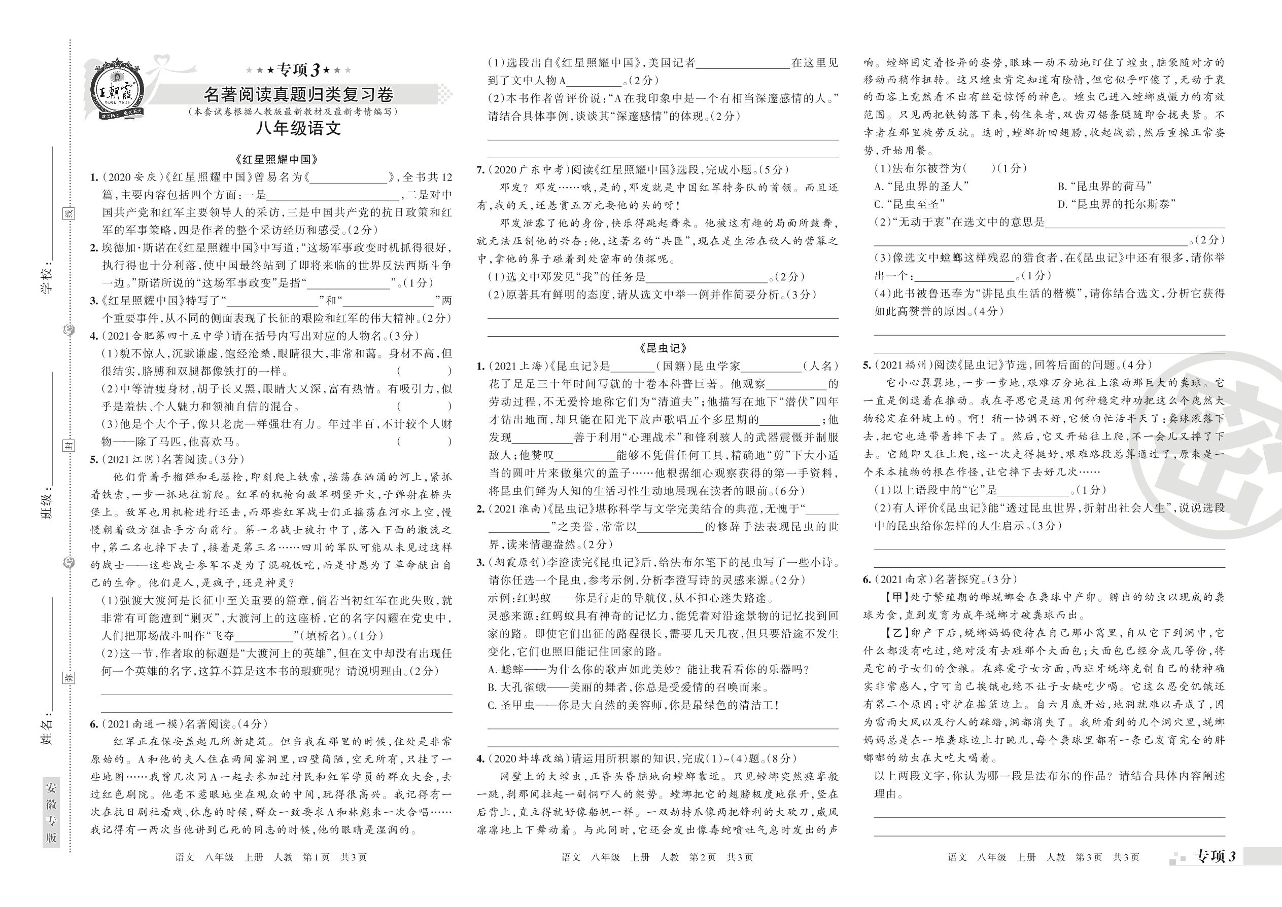 王朝霞期末专项卷——名著阅读真题归类复习卷八年级上册语文(人教版)【3】
