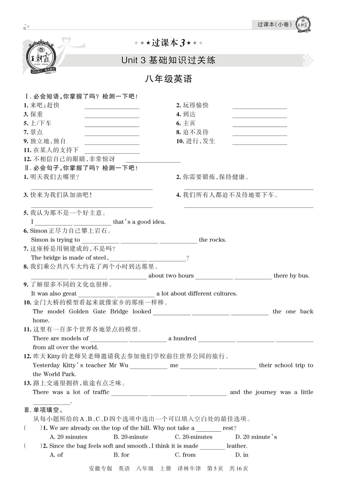 王朝霞期末过课本——Unit 3 基础知识过关练八年级上册英语(译林牛津版)【3】