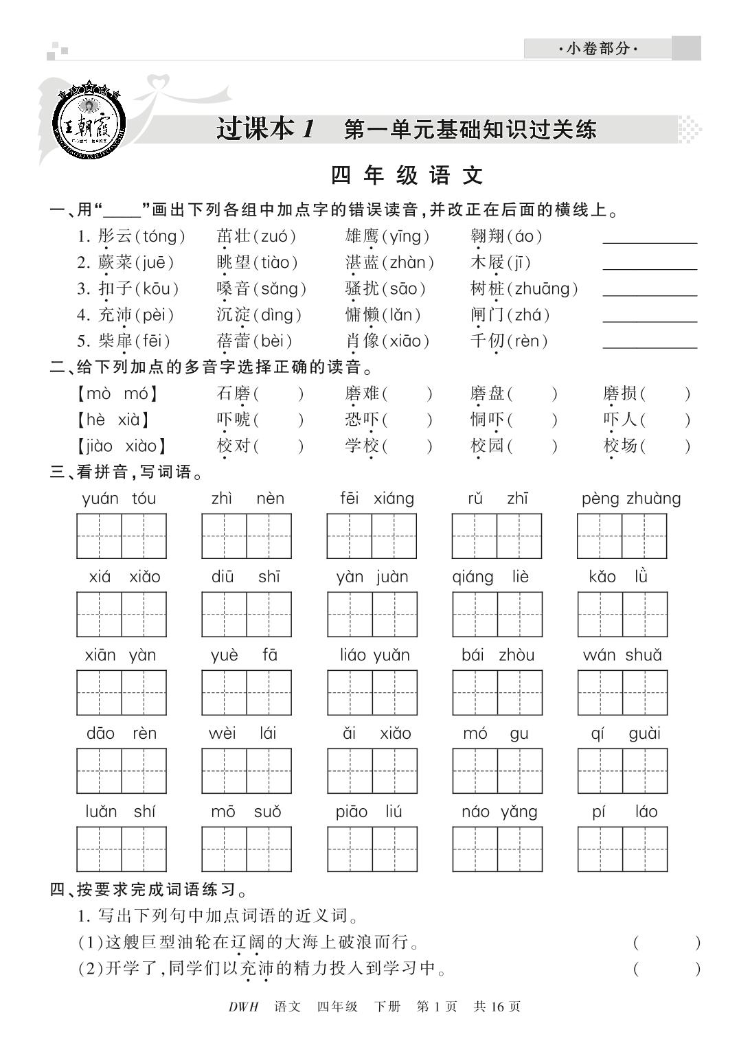 王朝霞期末小卷四年级下册语文(鄂教版)【0】