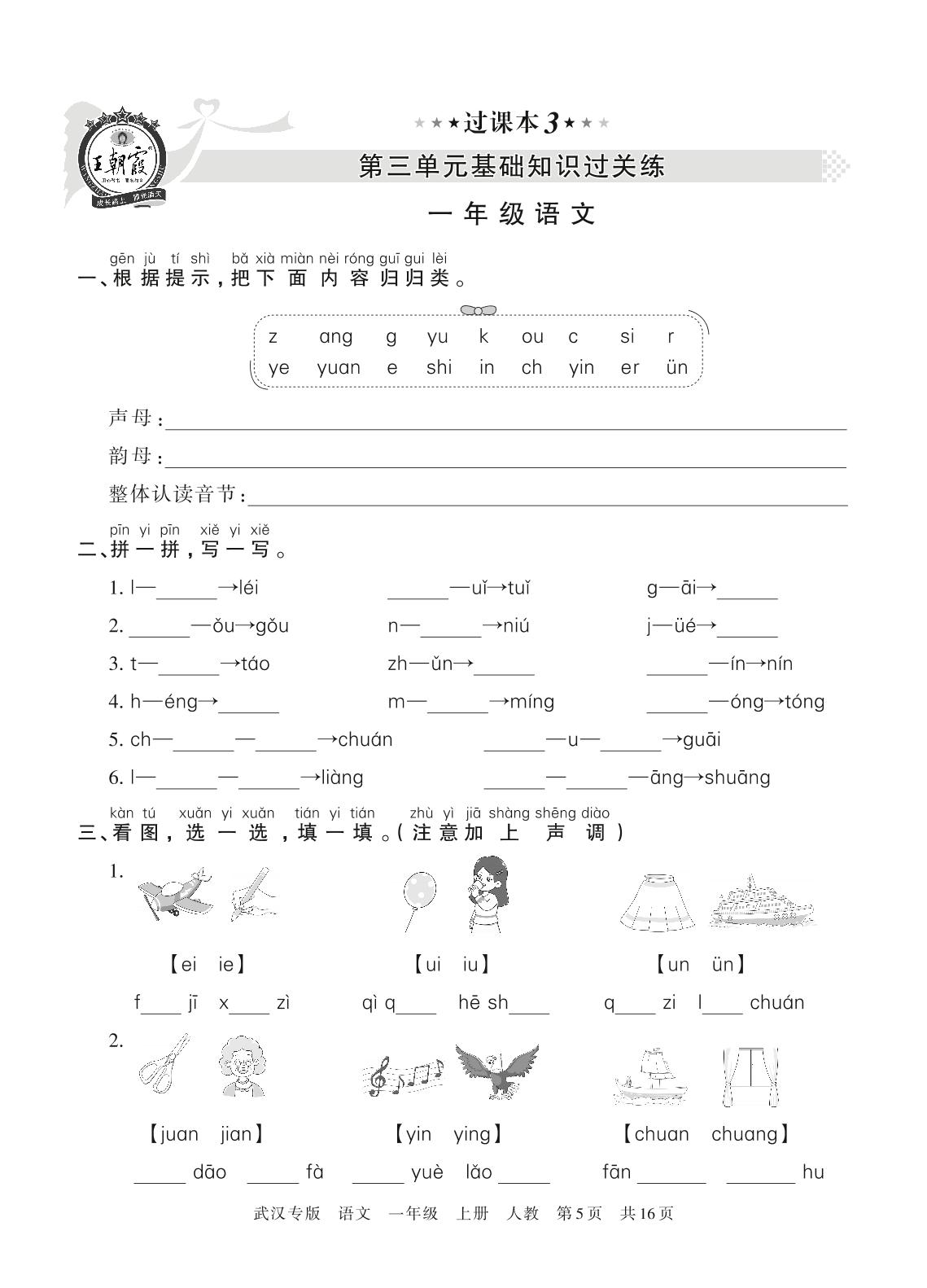 王朝霞期末过课本——第三单元基础知识过关练一年级上册语文(人教版)_R211116153730899【3】