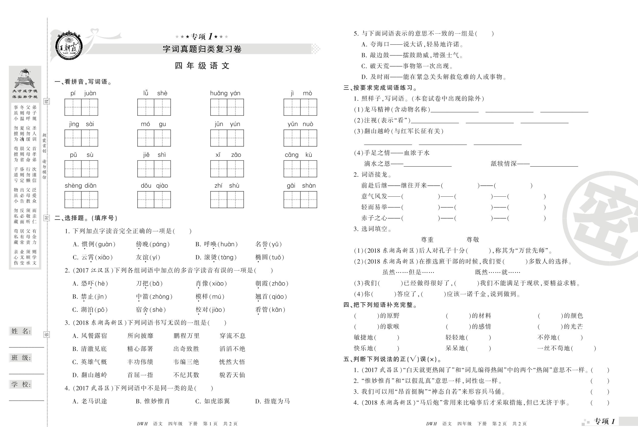 王朝霞期末专项卷四年级下册语文(鄂教版)_R210801202342【0】