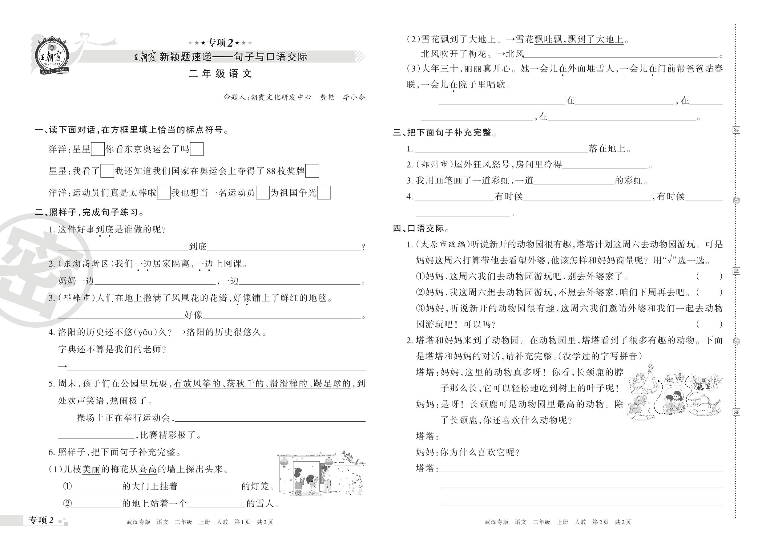 王朝霞期末专项卷——新颖题速递:句子与口语交际二年级上册语文(人教版)_R211116154527800【2】