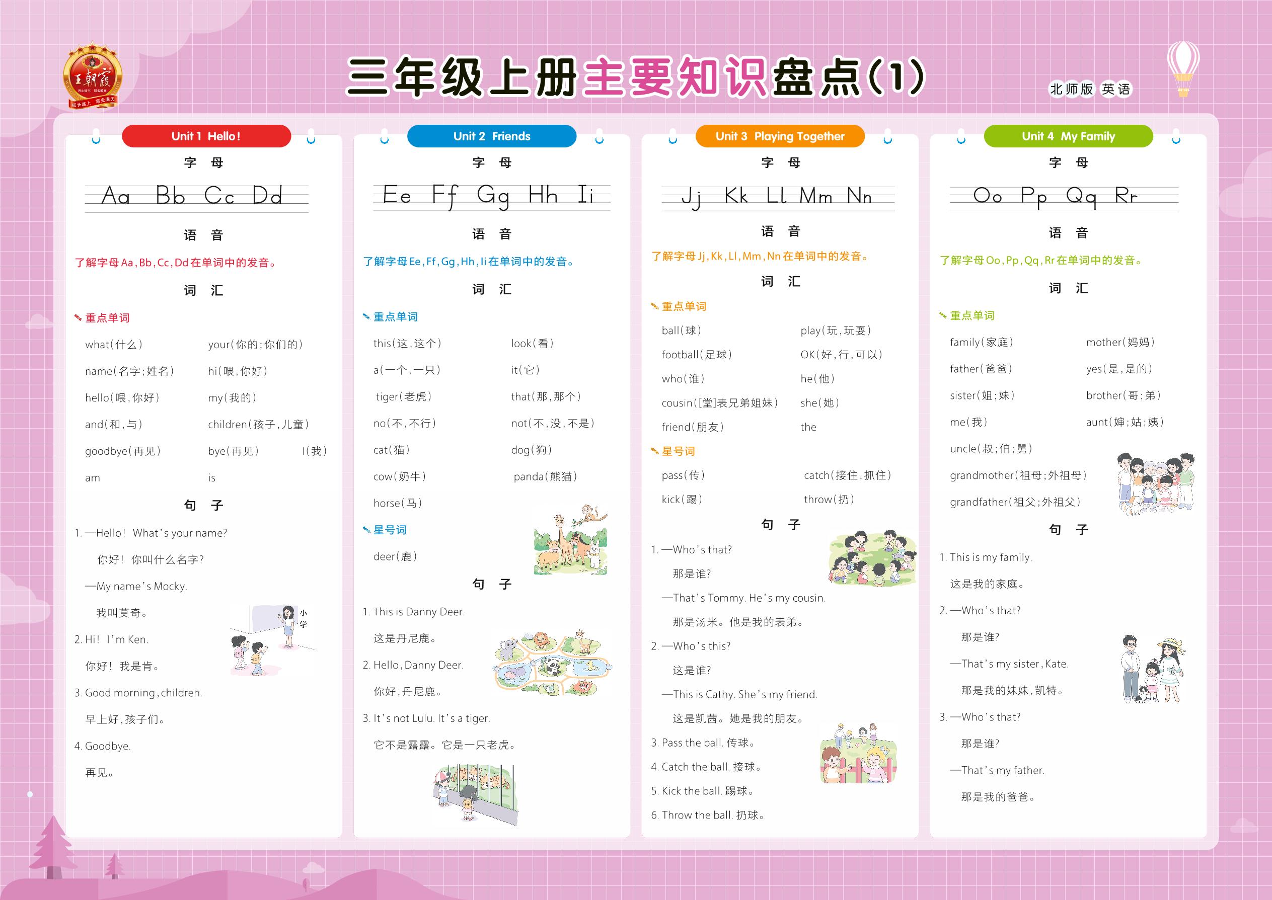 三年级英语北师版上册知识梳理