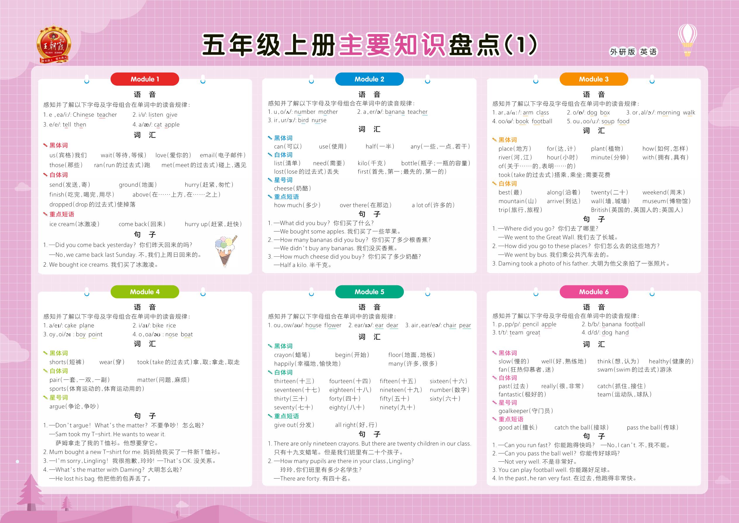 英语 五年级上册 外研版 知识盘点