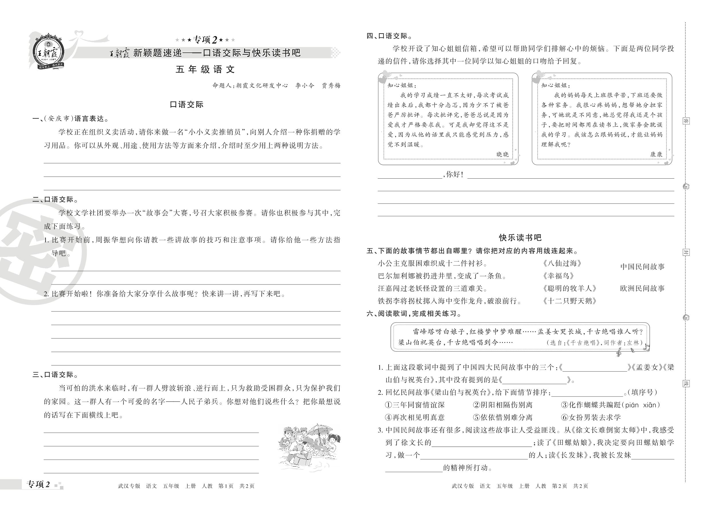 王朝霞期末专项卷——新颖题速递:口语交际与快乐读书吧五年级上册语文(人教版)【2】