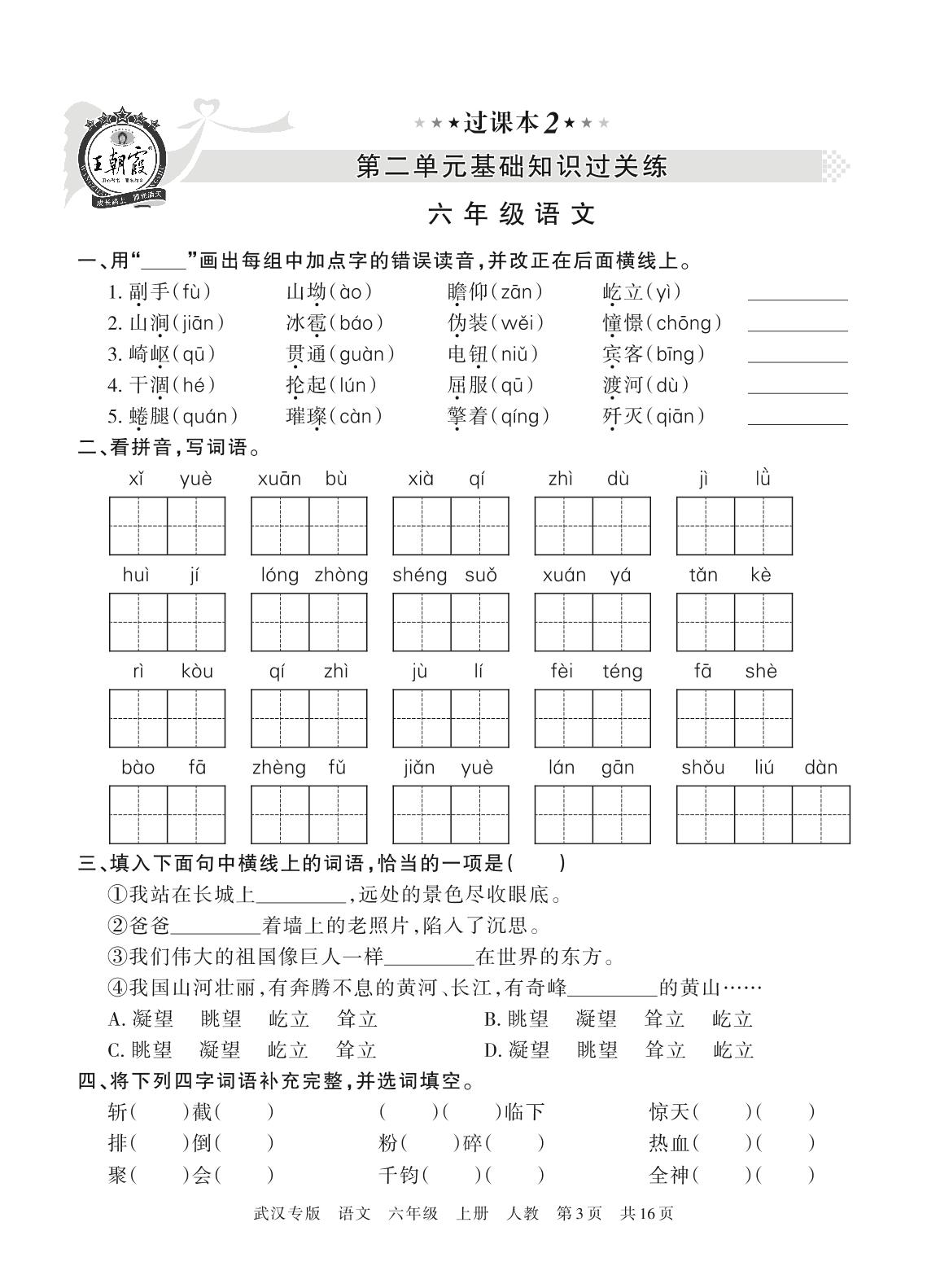 王朝霞期末过课本——第二单元基础知识过关练六年级上册语文(人教版)_R211116162043241【2】