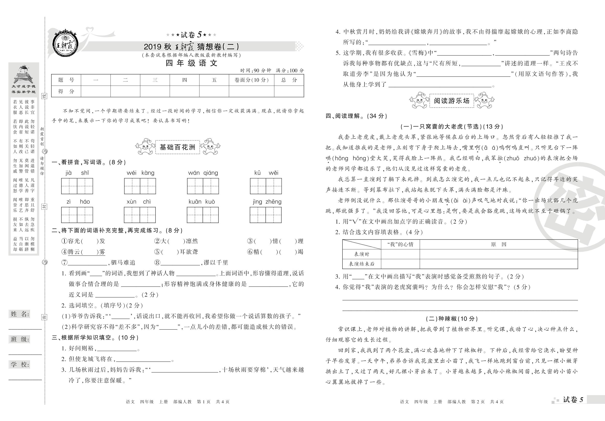 王朝霞期末猜想卷四年级上册语文(人教版)【5】