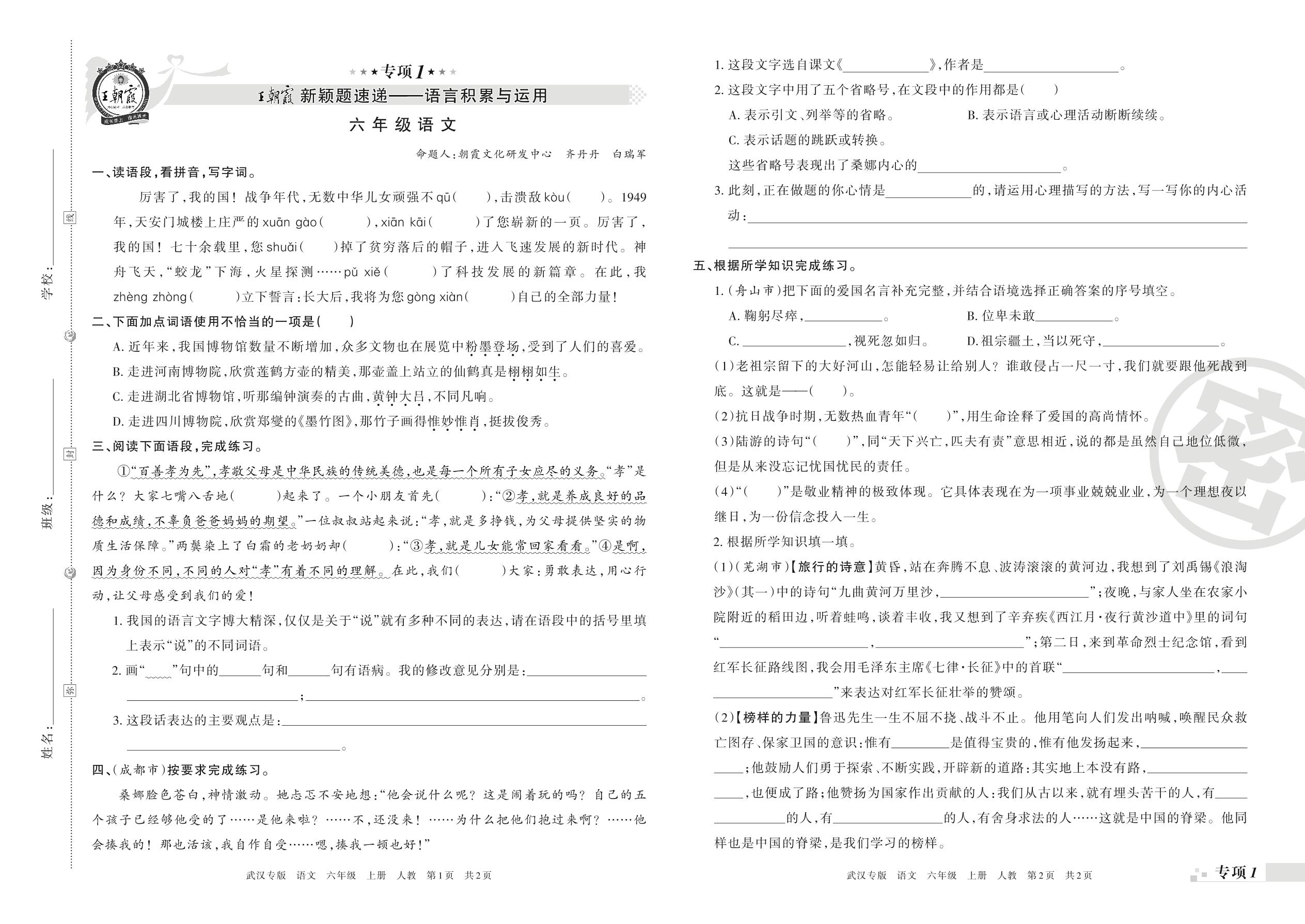 王朝霞期末专项卷——新颖题速递:语言积累与运用六年级上册语文(人教版)_R211116162043059【1】