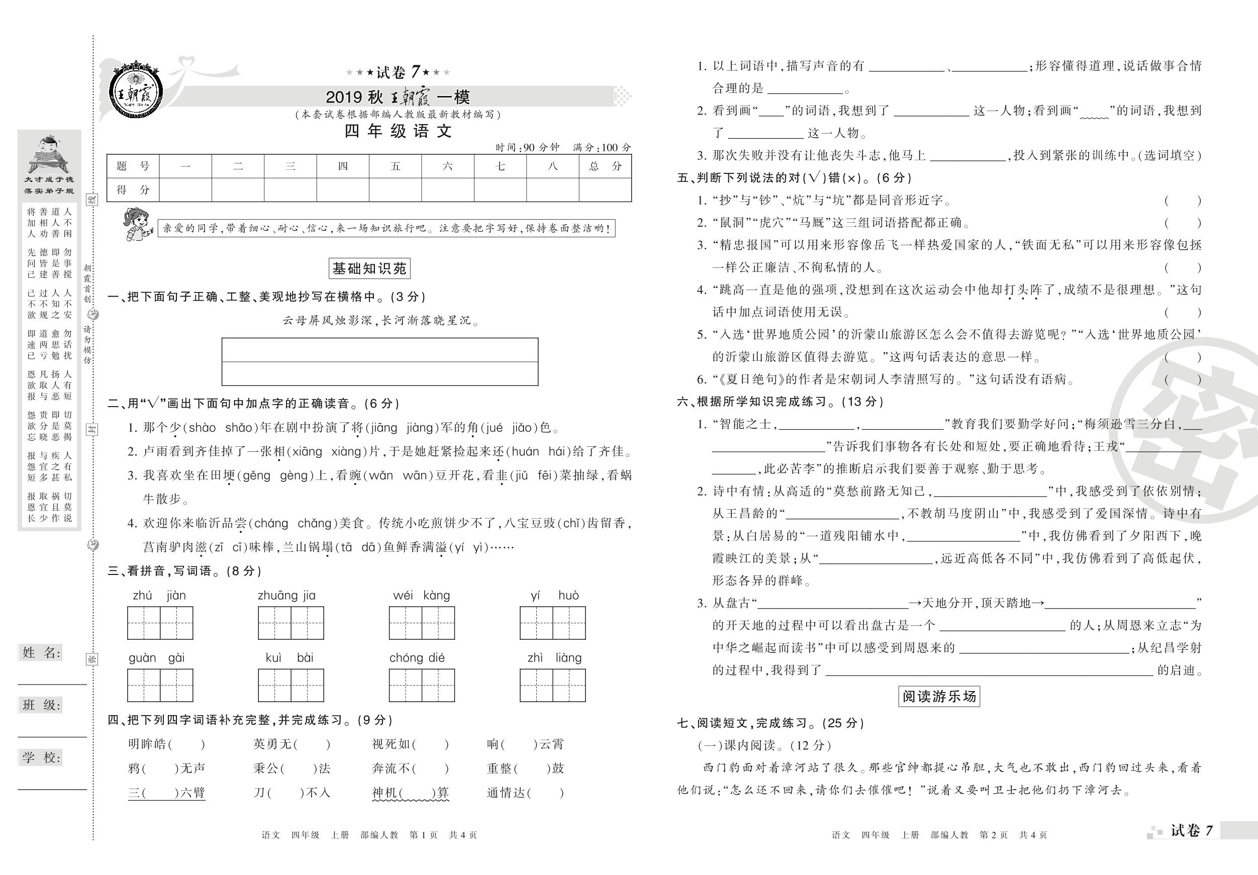 王朝霞期末模拟卷四年级上册语文(人教版)_R210801202420【7】