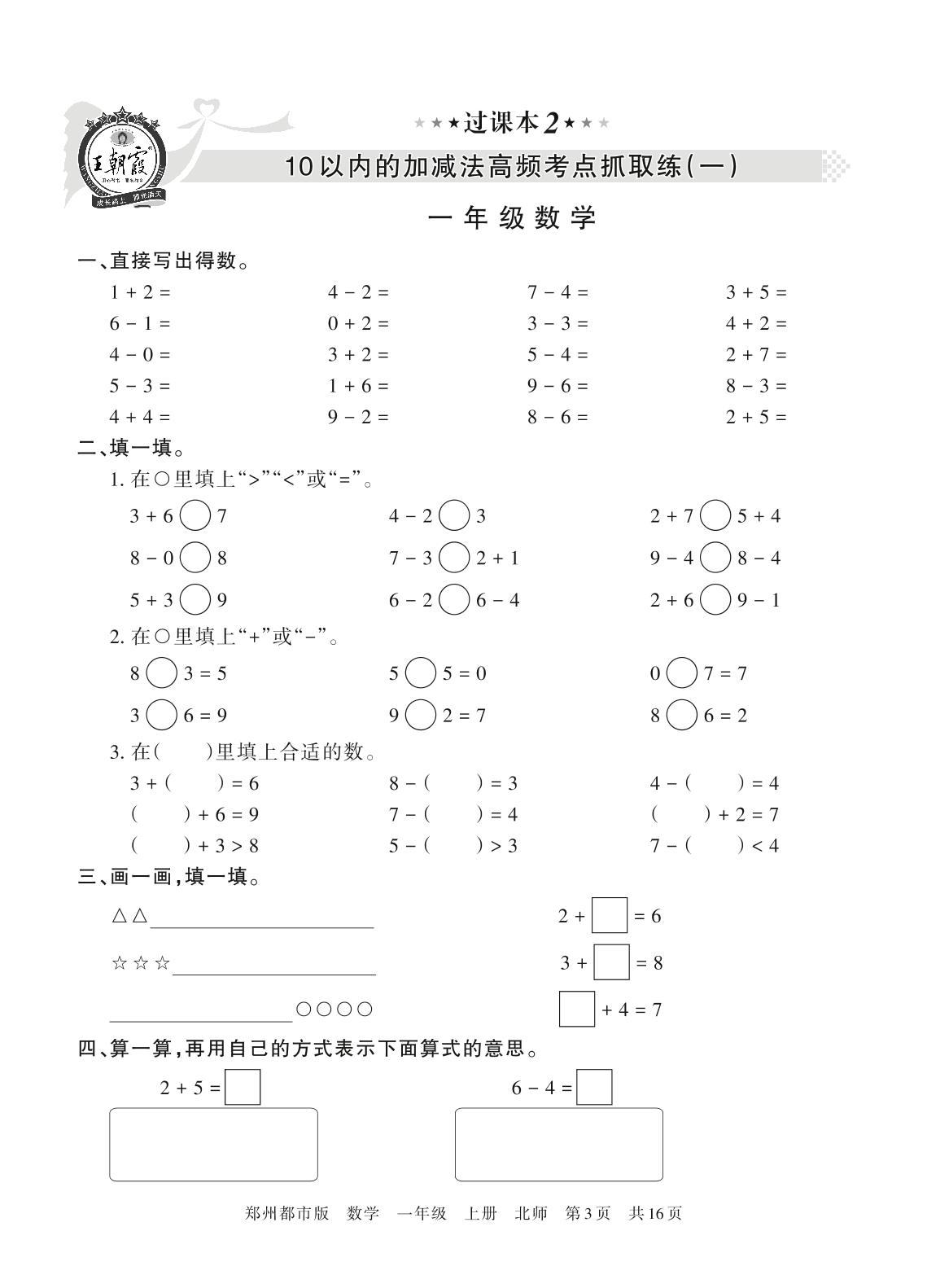 王朝霞期末过课本——10以内的加减法高频考点抓取练(一)一年级上册数学(北师版)_R211116165333264【2】