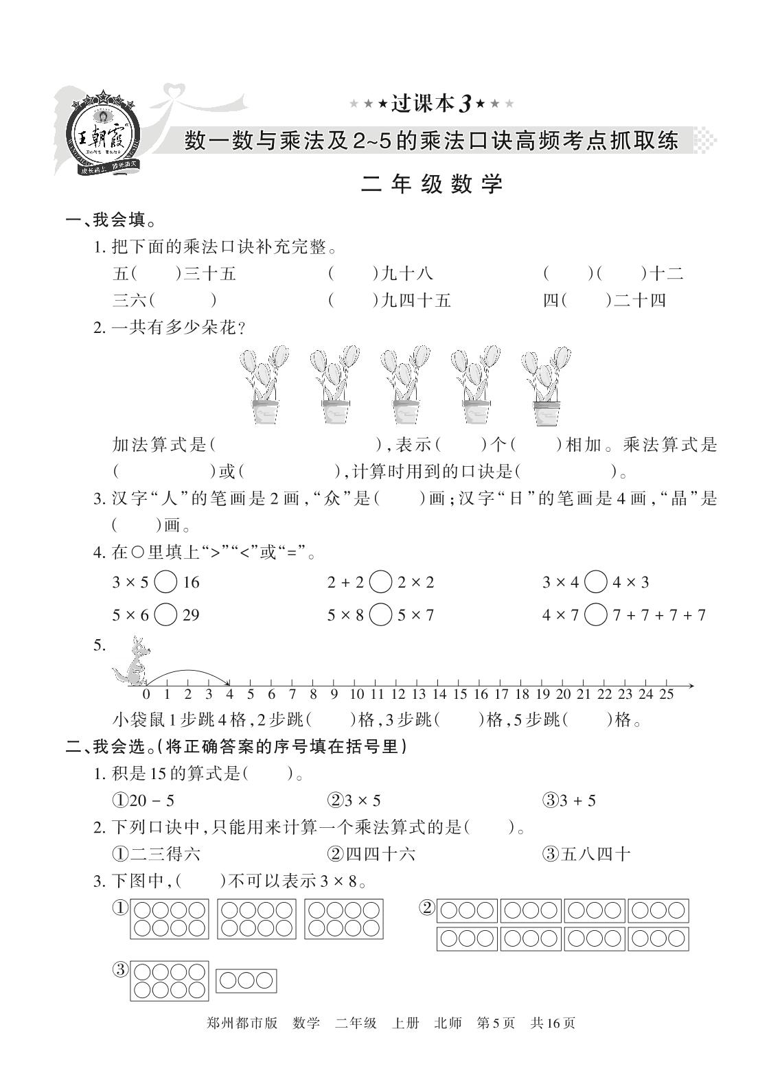 王朝霞期末过课本——数一数与乘法及2~5的乘法口诀高频考点抓取练二年级上册数学(北师版)_R211116165633548【3】
