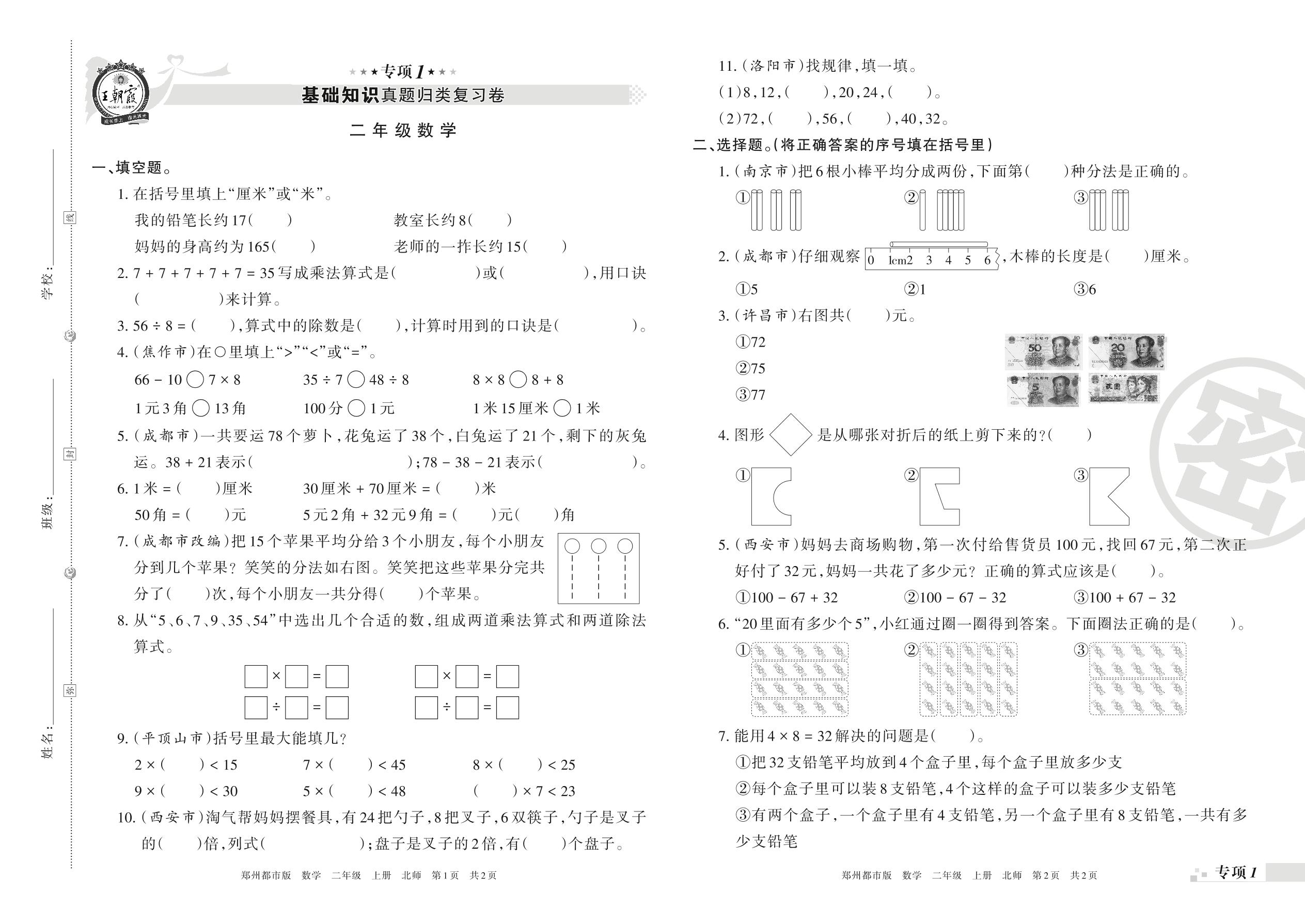 王朝霞期末专项卷——基础知识真题归类复习卷二年级上册数学(北师版)_R211116165633298【1】
