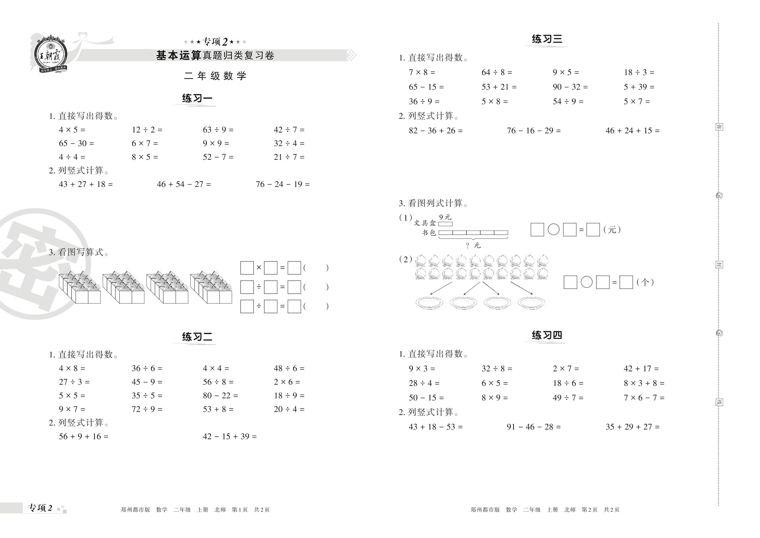 王朝霞期末专项卷——基本运算真题归类复习卷二年级上册数学(北师版)_R211116165633430【2】