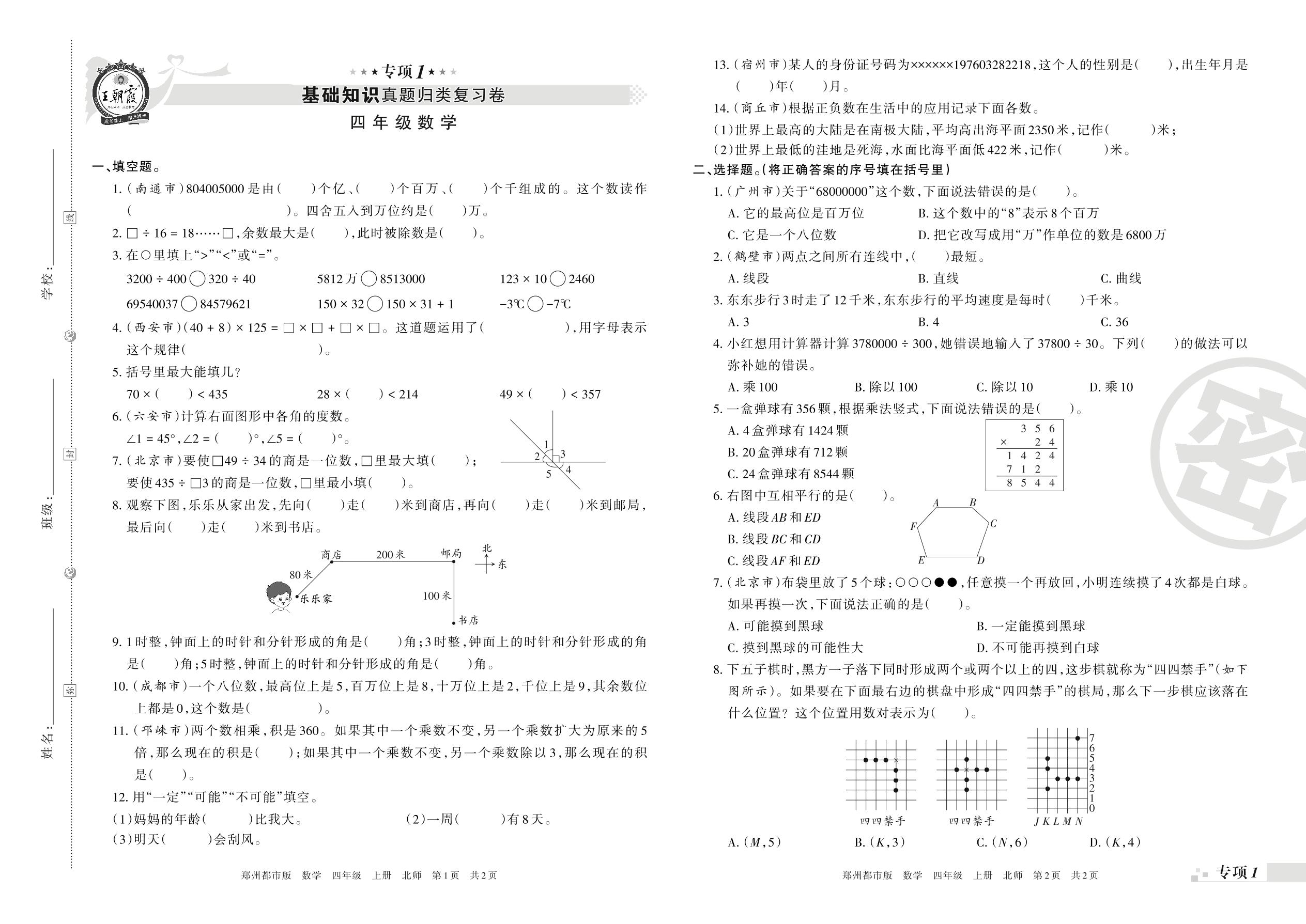 王朝霞期末专项卷——基础知识真题归类复习卷四年级上册数学(北师版)【1】
