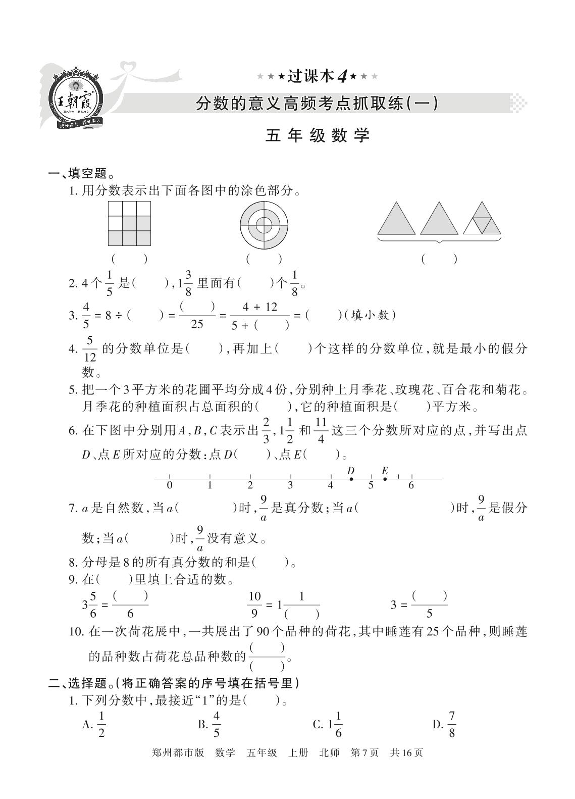 王朝霞期末过课本——分数的意义高频考点抓取练(一)五年级上册数学(北师版)_R211116170653036【4】
