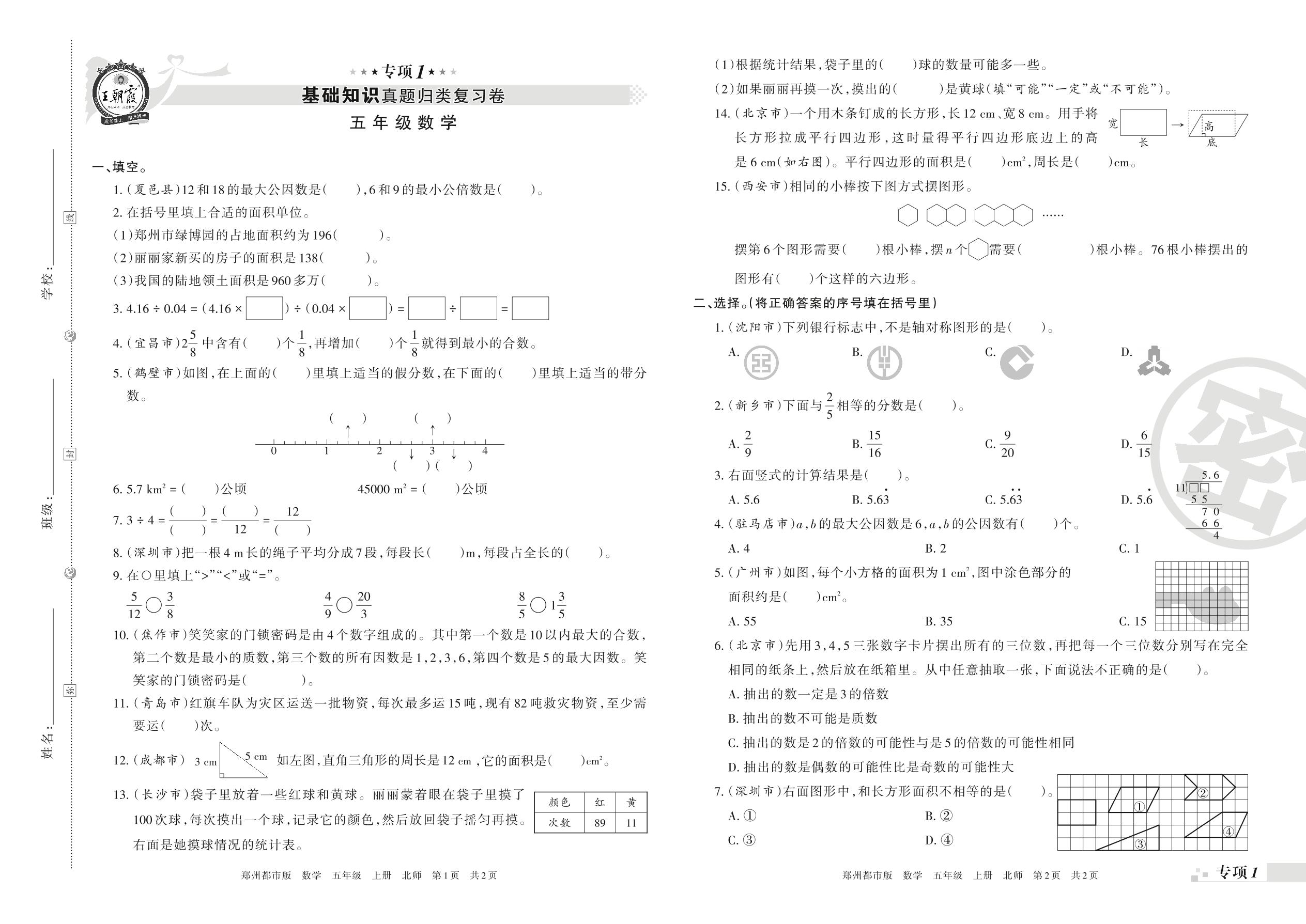 王朝霞期末专项卷——基础知识真题归类复习卷五年级上册数学(北师版)【1】