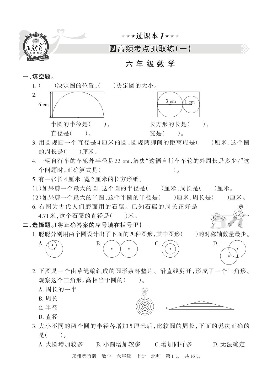 王朝霞期末过课本——圆高频考点抓取练(一)六年级上册数学(北师版)_R211116171002453【1】