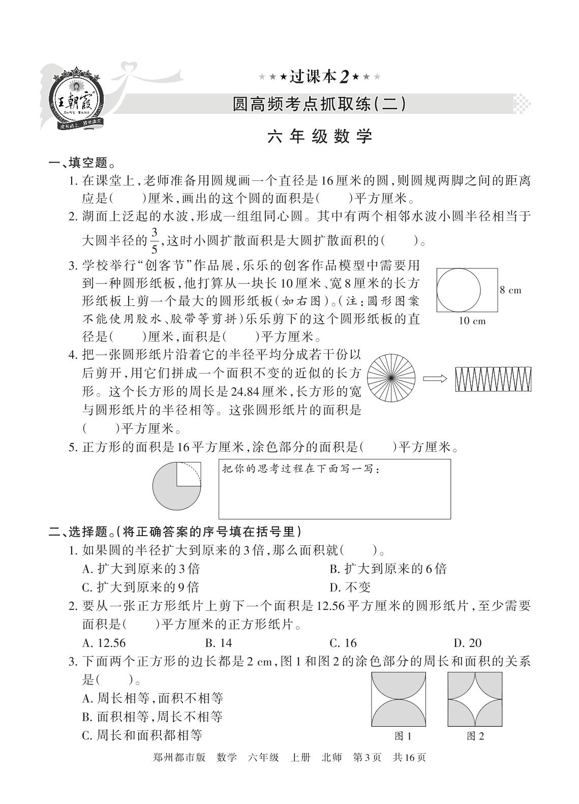 王朝霞期末过课本——圆高频考点抓取练(二)六年级上册数学(北师版)_R211116171002445【2】